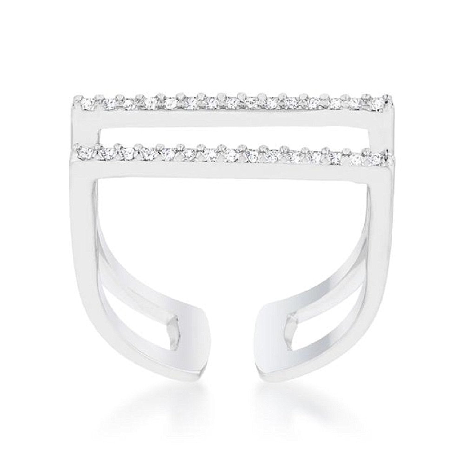 • Small -- clear stones accent a contemporary -- parallel style for a cool -- modern look. A classically simple statement piece.