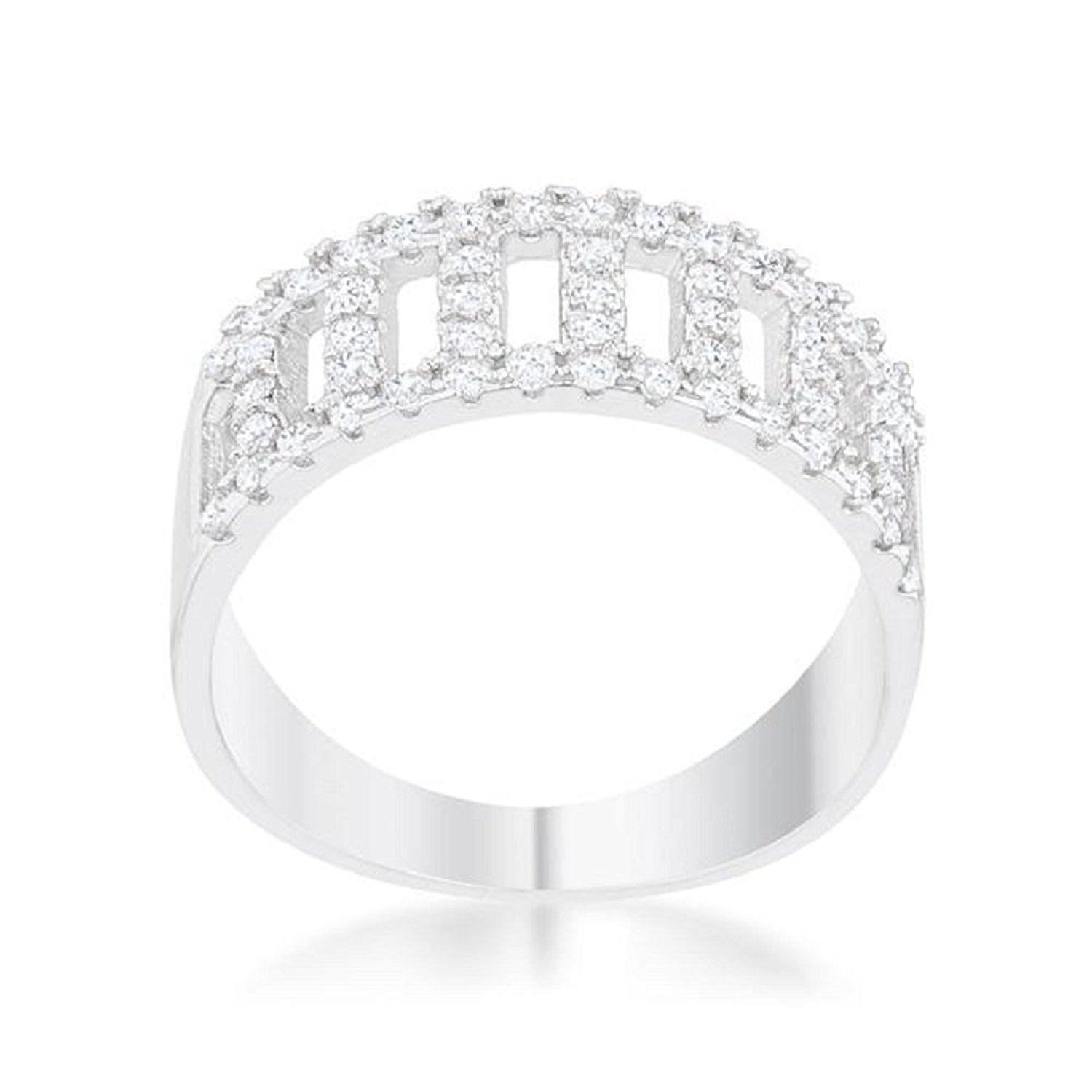 - Small -- clear stones accent classic -- linear designs in this beautiful band ring.