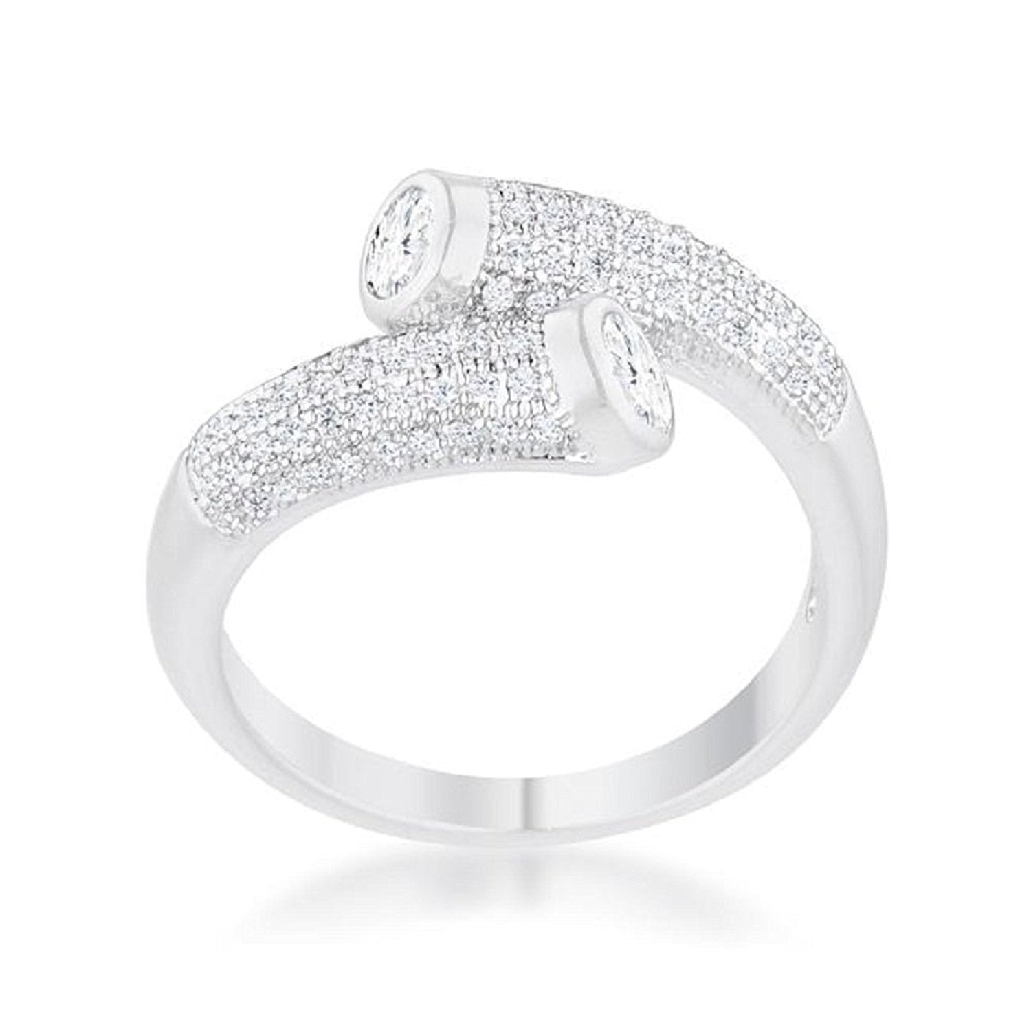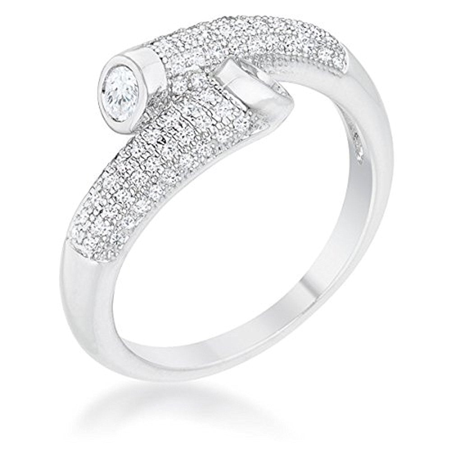 - Small -- delicate stones accent the band of a contemporary wrap ring -- while bezel-set stones top off the design.