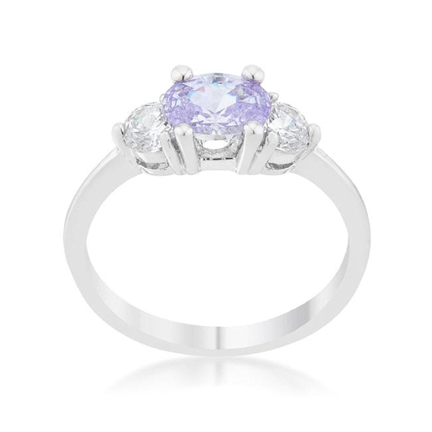 • A pair of clear -- round cut stones accompany a lavender -- oval cut center stone in this elegantly simple -- 1.2 carat engagement ring.