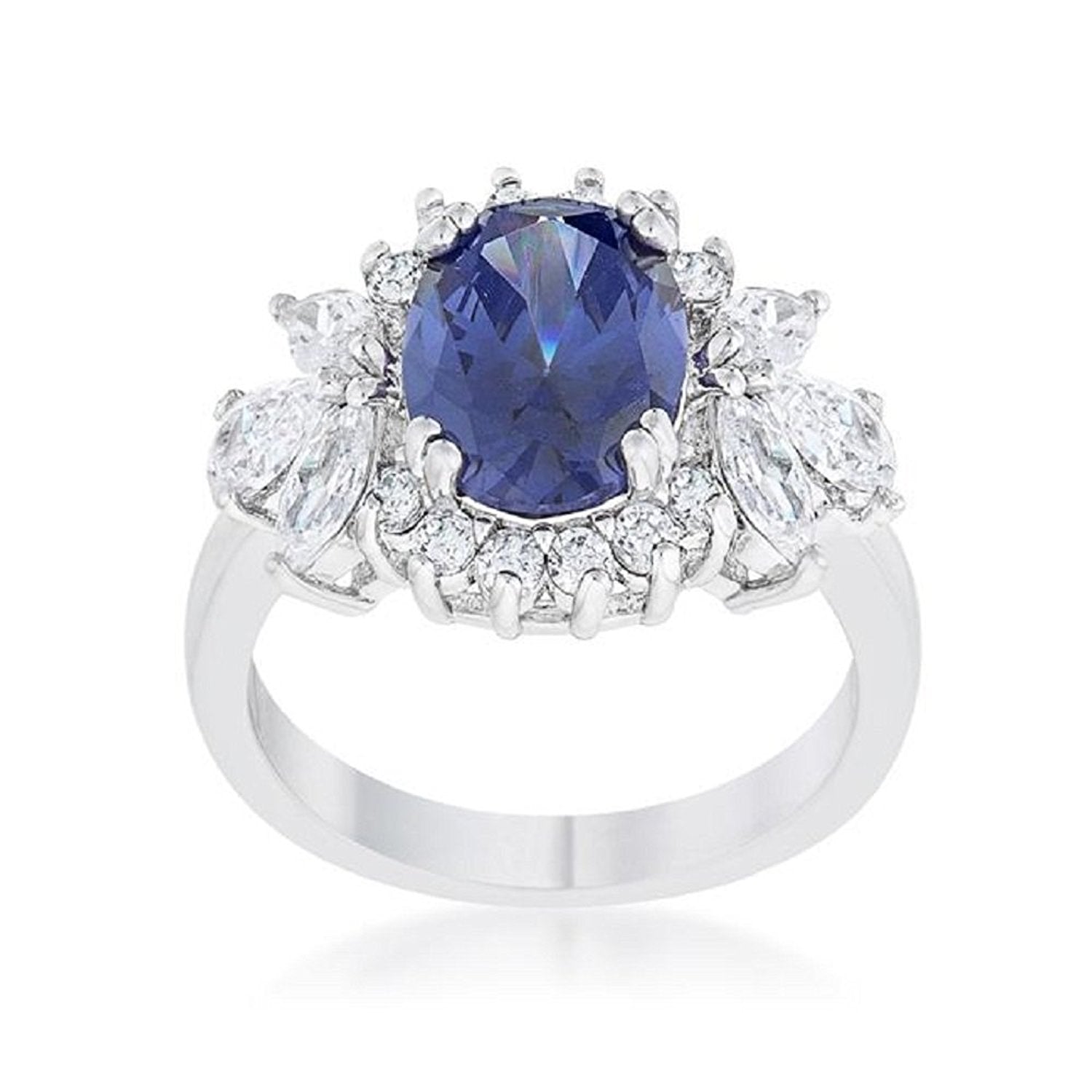 - A mix of stones surround a single -- beautiful centerstone in this classic cocktail ring. Subtle sparkle at its finest. Our genuine rhodium finish is achieved using an electroplating process that coats the item with heavy layers of rhodium -- a close cousin to platinum. This gives our jewelry a platinum luster.