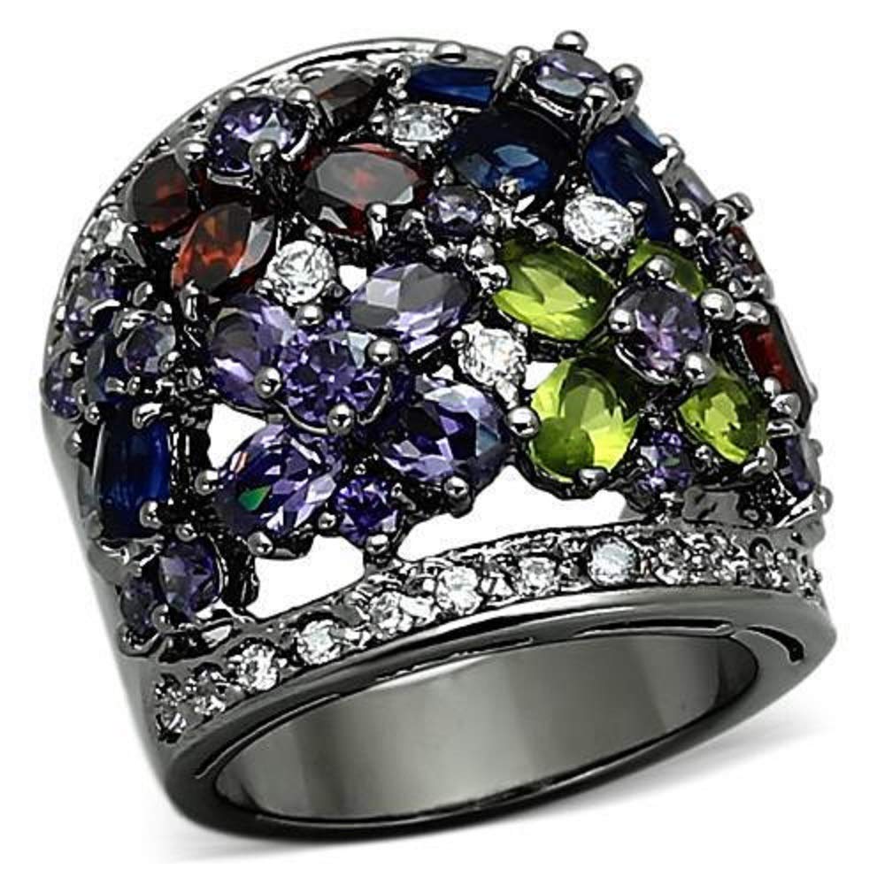 WildKlass Stainless Steel Flower Ring Ruthenium Women AAA Grade CZ Multi Color