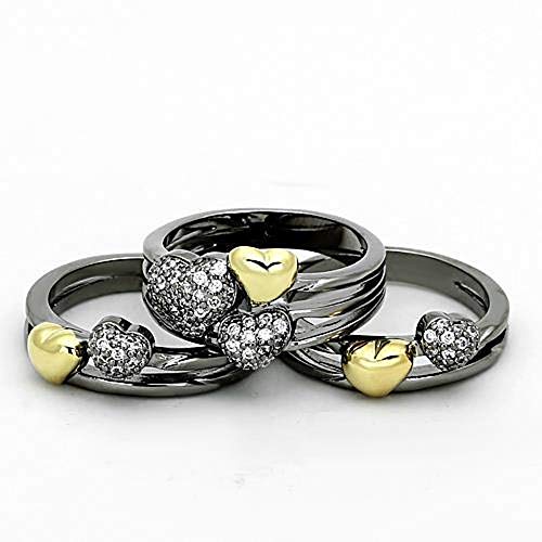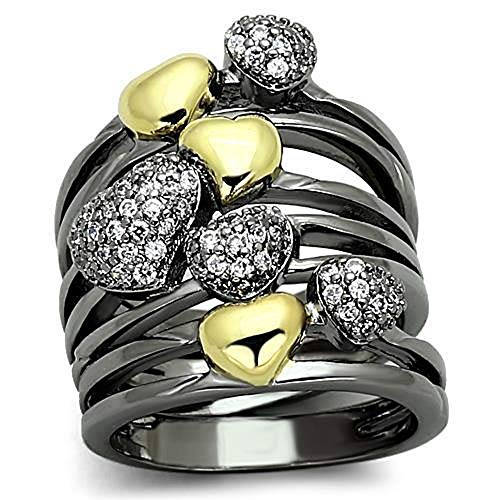 WildKlass Brass Heart Ring Gold+Ruthenium Women AAA Grade CZ Clear