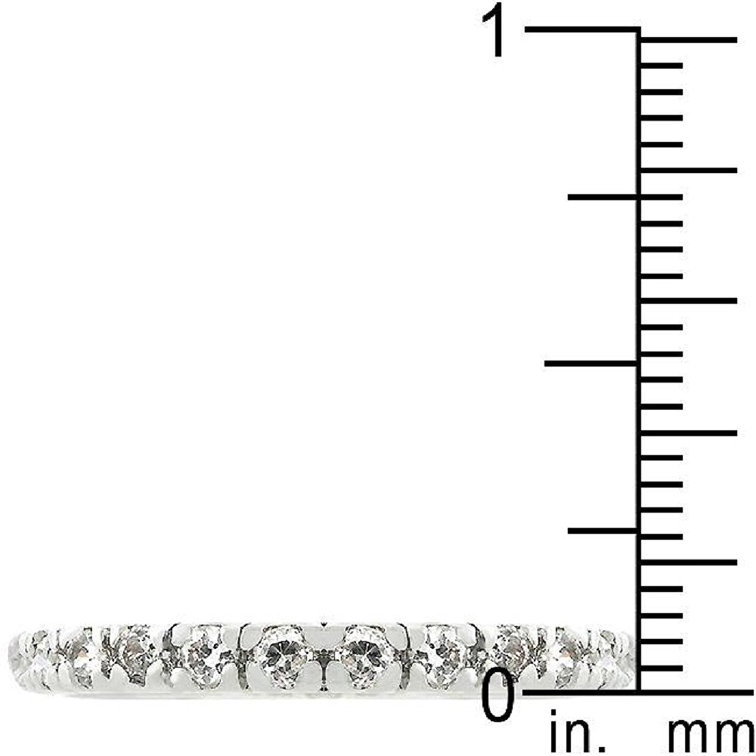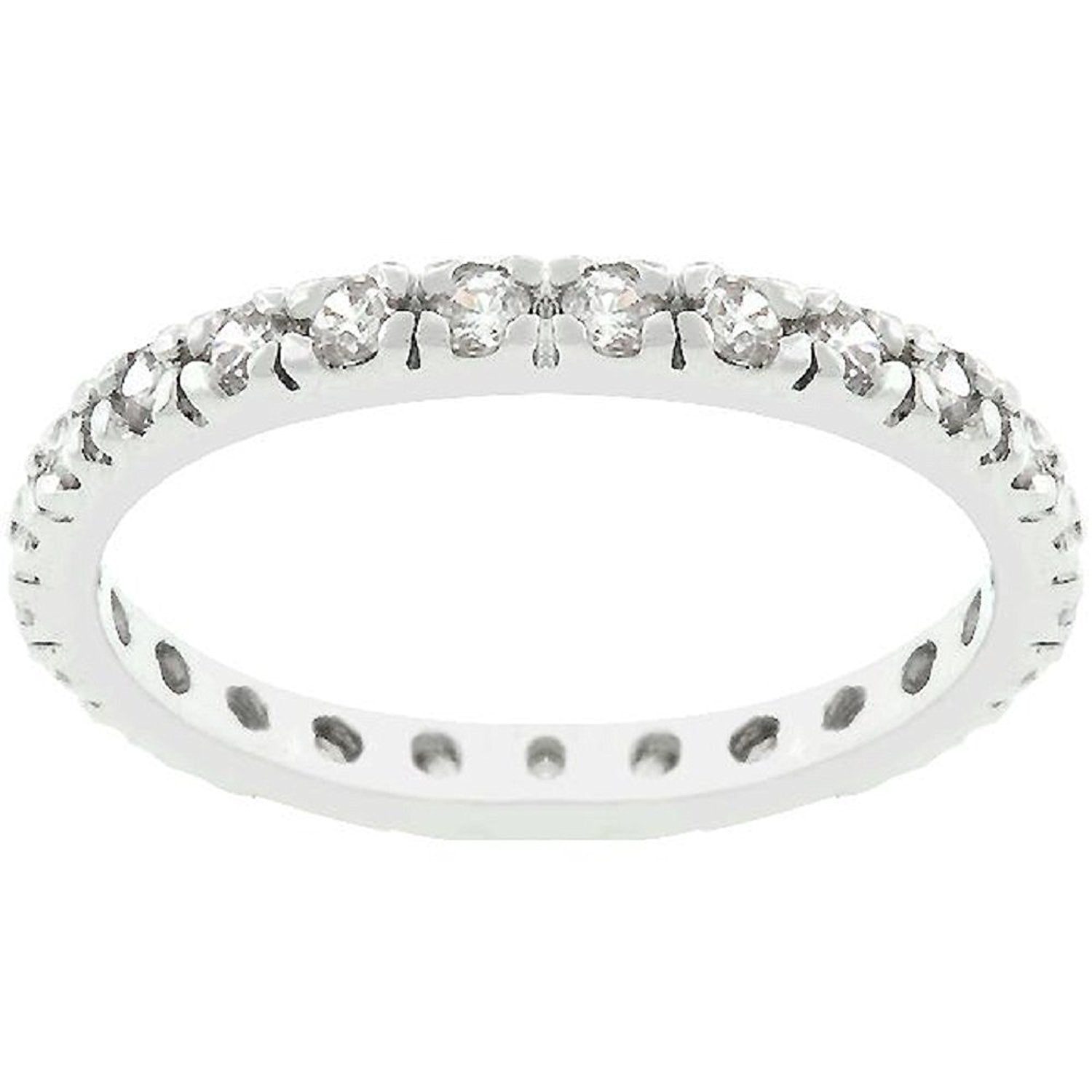 - This petite eternity style classic is fashioned with approximately .6 carats of round cut cubic zirconia set over a lustrous silver tone. Genuine Rhodium Plating is achieved using an electroplating process that coats the item with heavy layers of rhodium a close cousin to platinum which gives our jewelry a platinum luster.