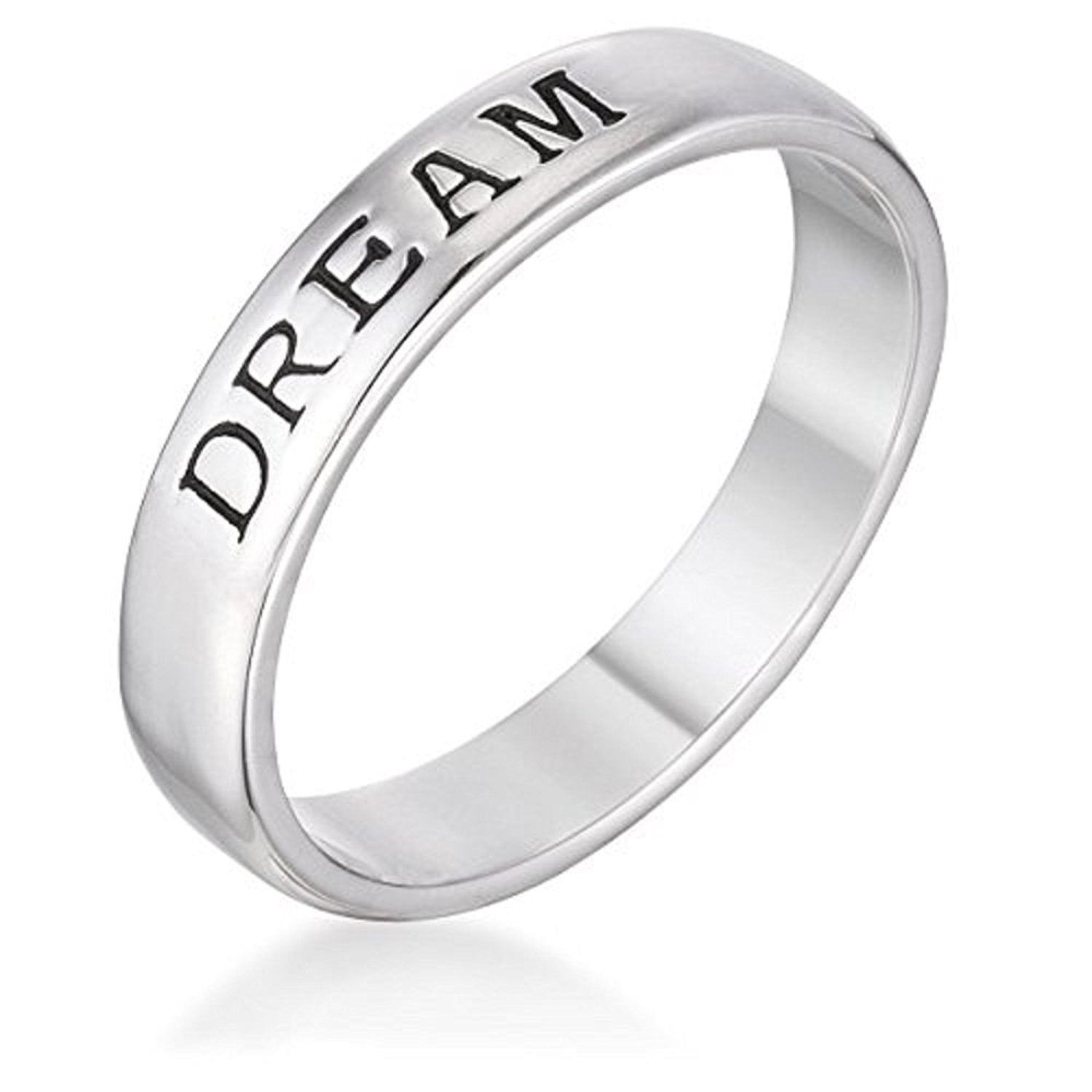 - This rhodium plated eternity band is crafted with the same material that gives white gold its glorious shine. DREAM is right on the band. it is elegant and appropriate for casual wear or a night out.
