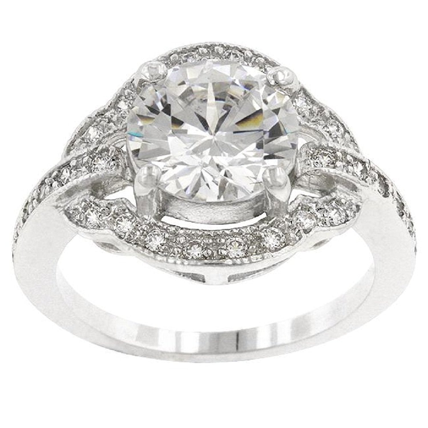 - At 6.5 total carats of cubic zirconia -- this antique style engagement set features a feminine shank boasting a 2.5 carat center stone and small cubic zirconia accenting its shoulders. The center of the ring is a separate band that complements the ring perfectly. Genuine Rhodium Plating is achieved using an electroplating process that coats the item with heavy layers of rhodium a close cousin to platinum which gives our jewelry a platinum luster.