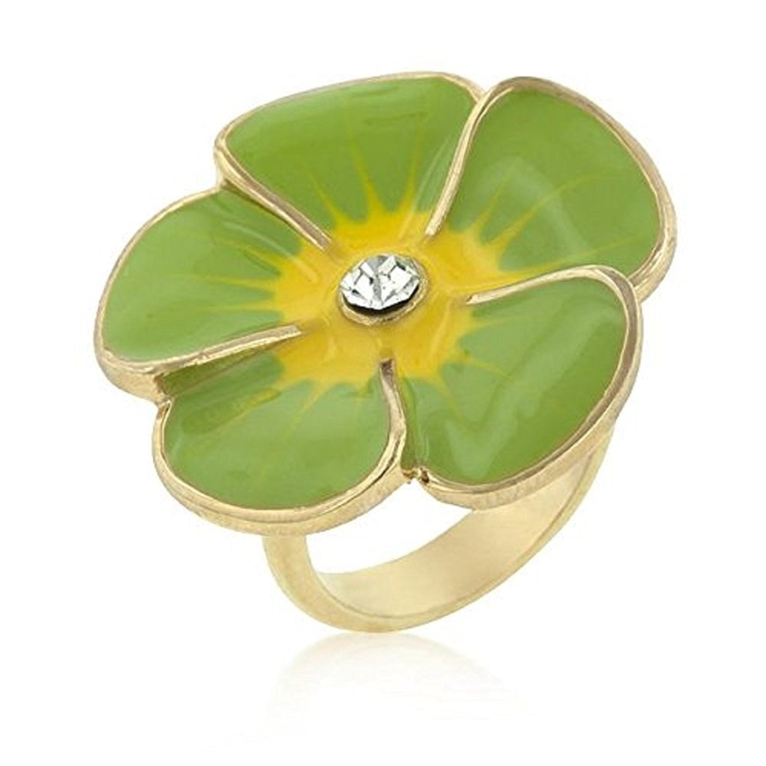 - Brighten your style with this floral zircon ring! 18k plated gold is achieved using an electroplating process that coats the item with heavy layers of 18k Yellow Gold and color-treated to display a perfect 14k Hamilton gold color.