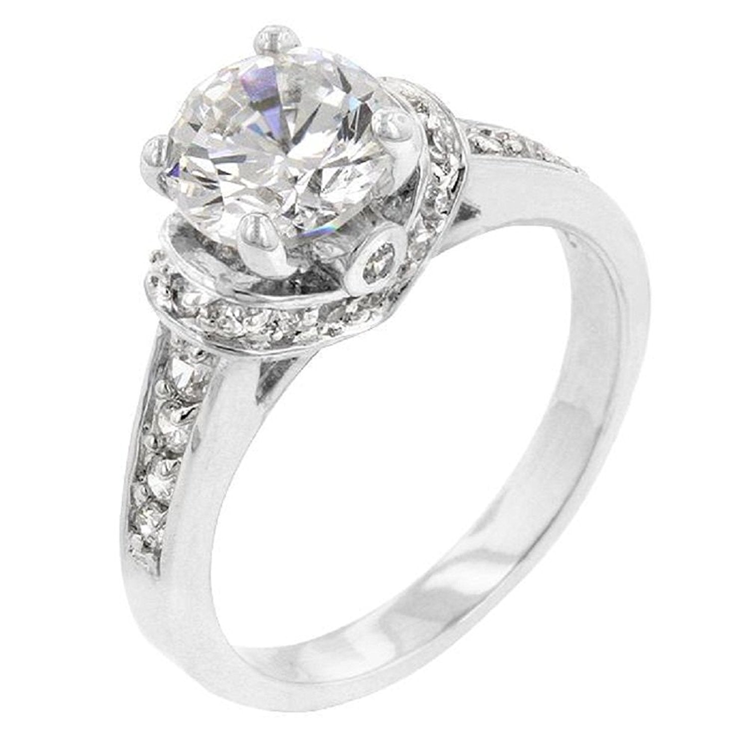 - The rhodium plated Regal features clear cubic zirconia set all around. Genuine Rhodium Plating is achieved using an electroplating process that coats the item with heavy layers of rhodium a close cousin to platinum which gives our jewelry a platinum luster.