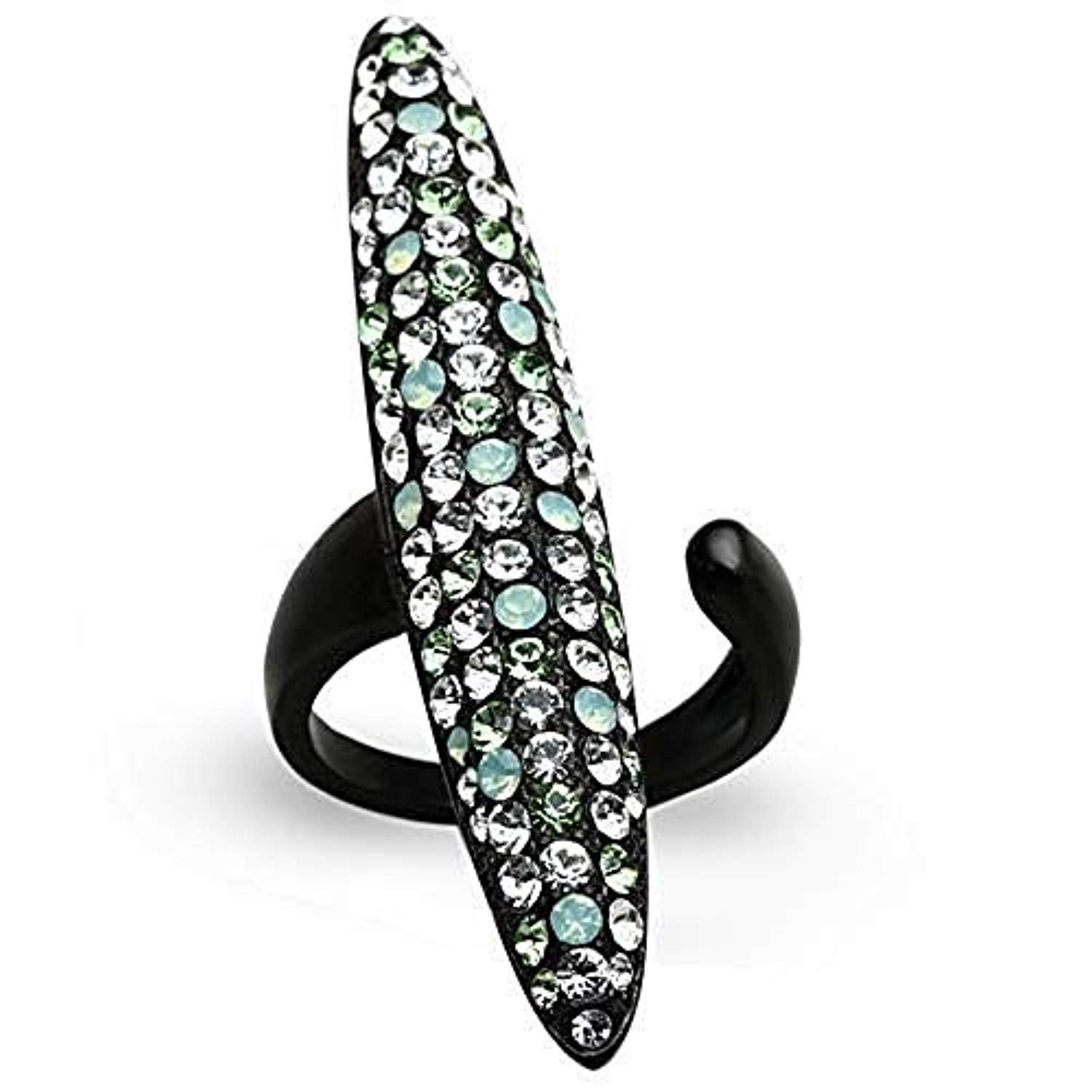 WildKlass Stainless Steel Cuff Ring IP Black Women Top Grade Crystal Multi Color