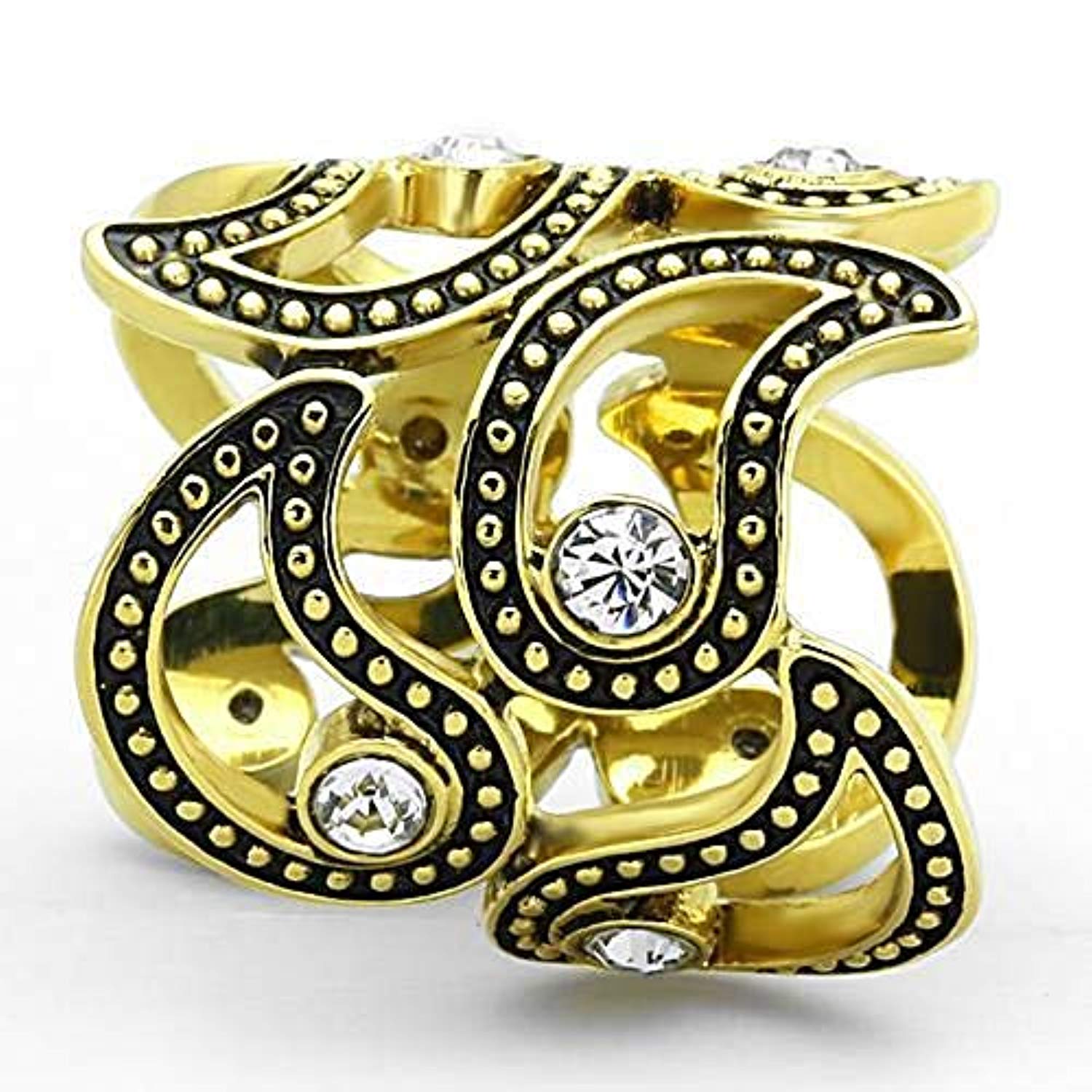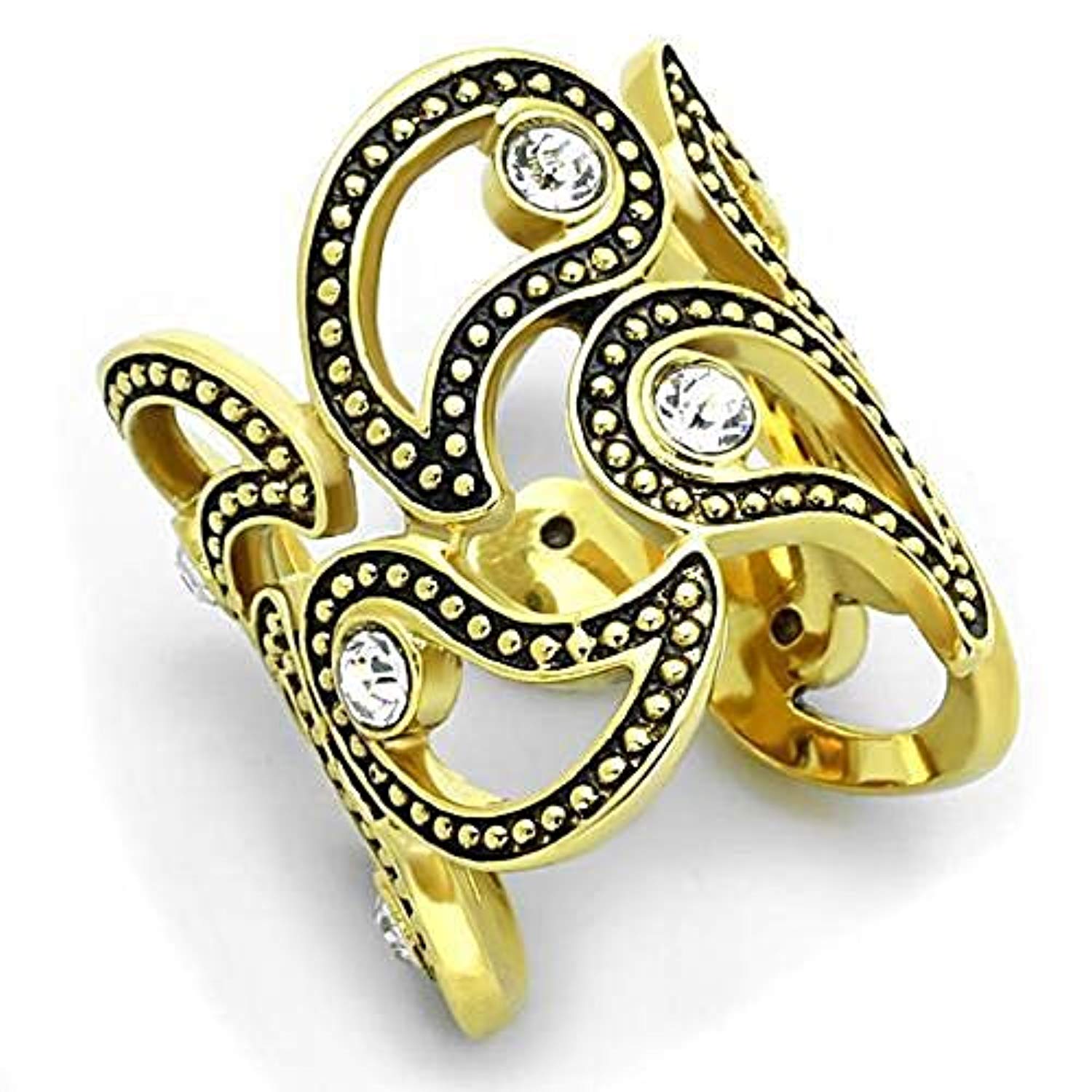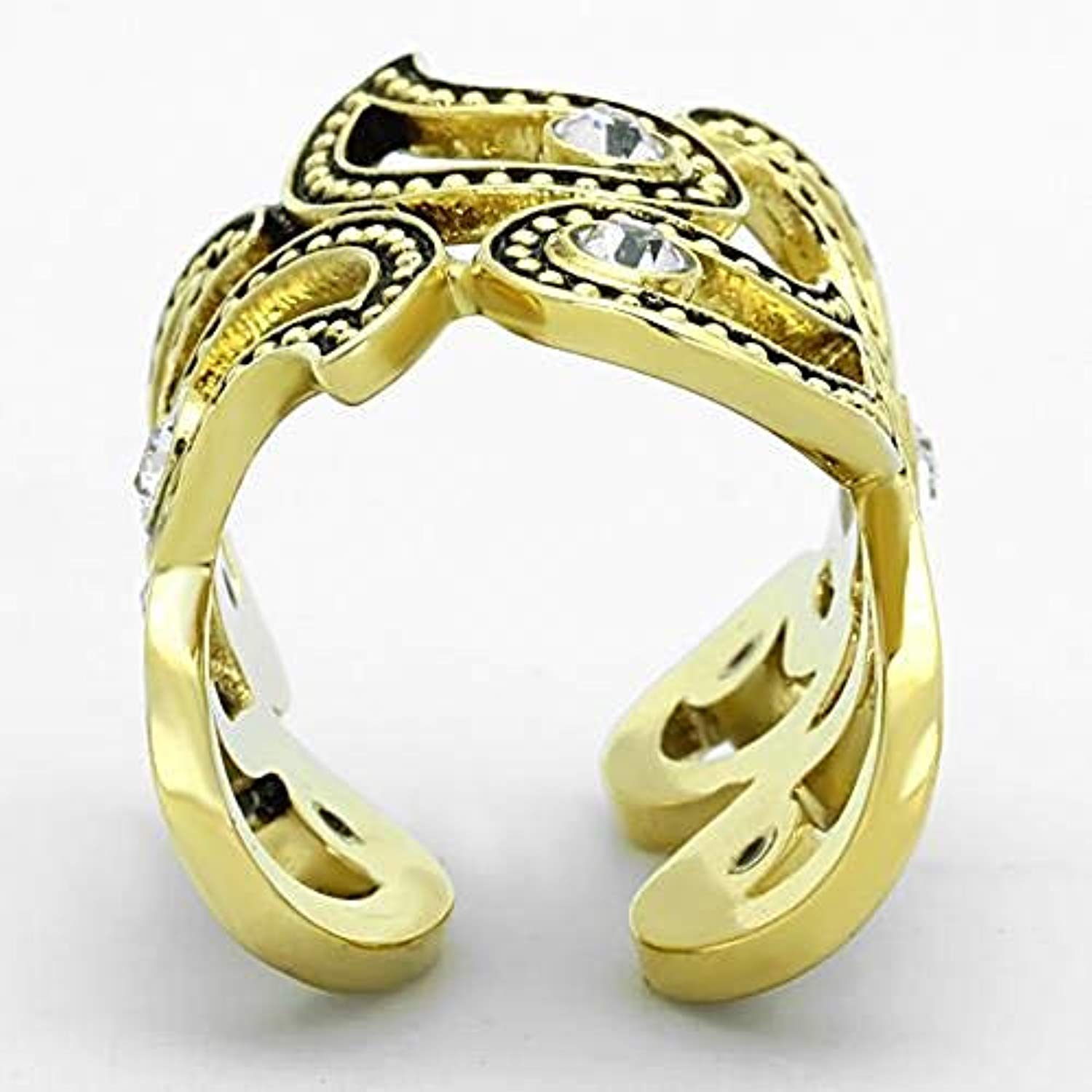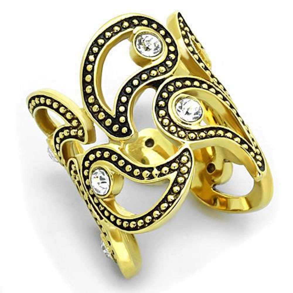WildKlass Stainless Steel Cuff Ring IP Gold Women Top Grade Crystal Clear