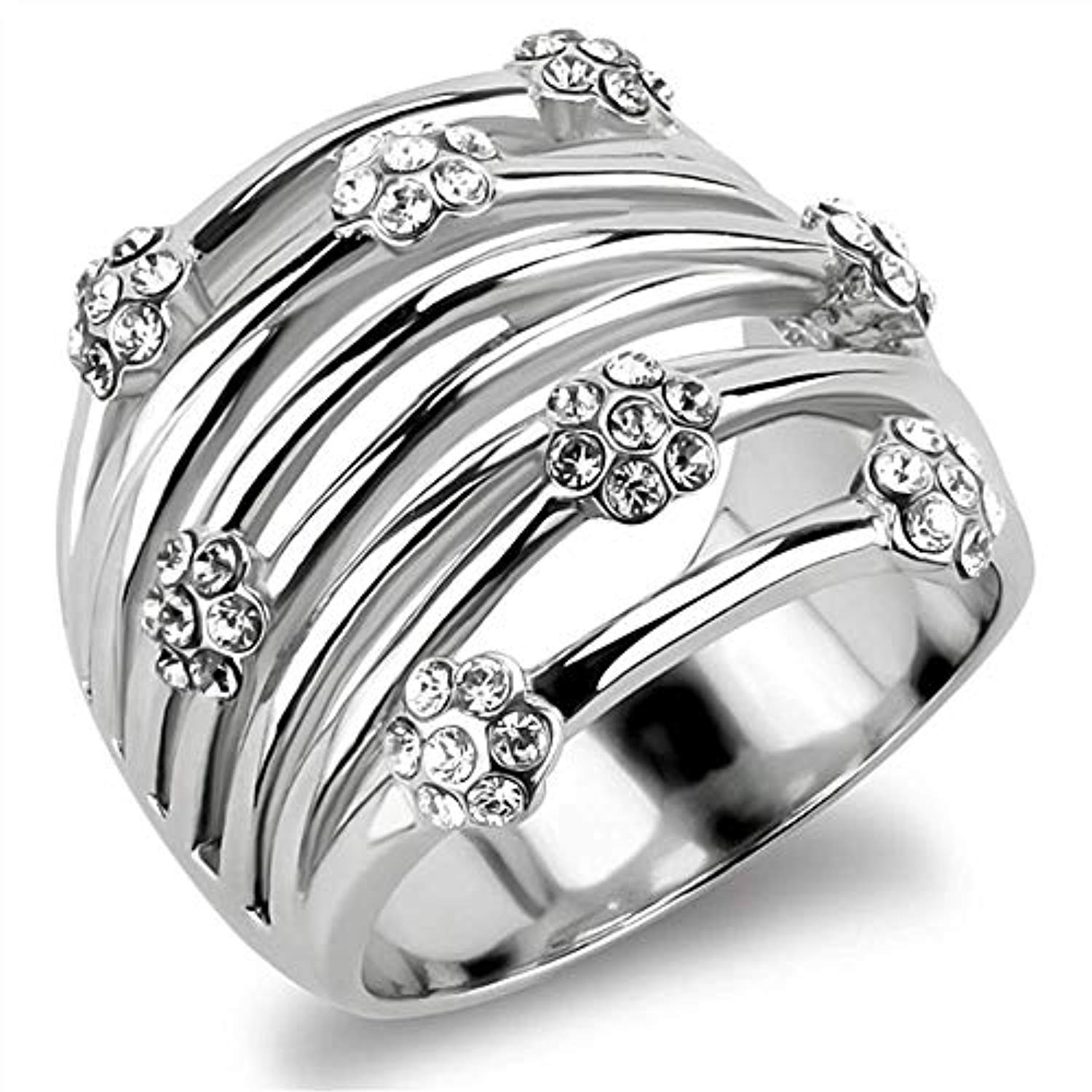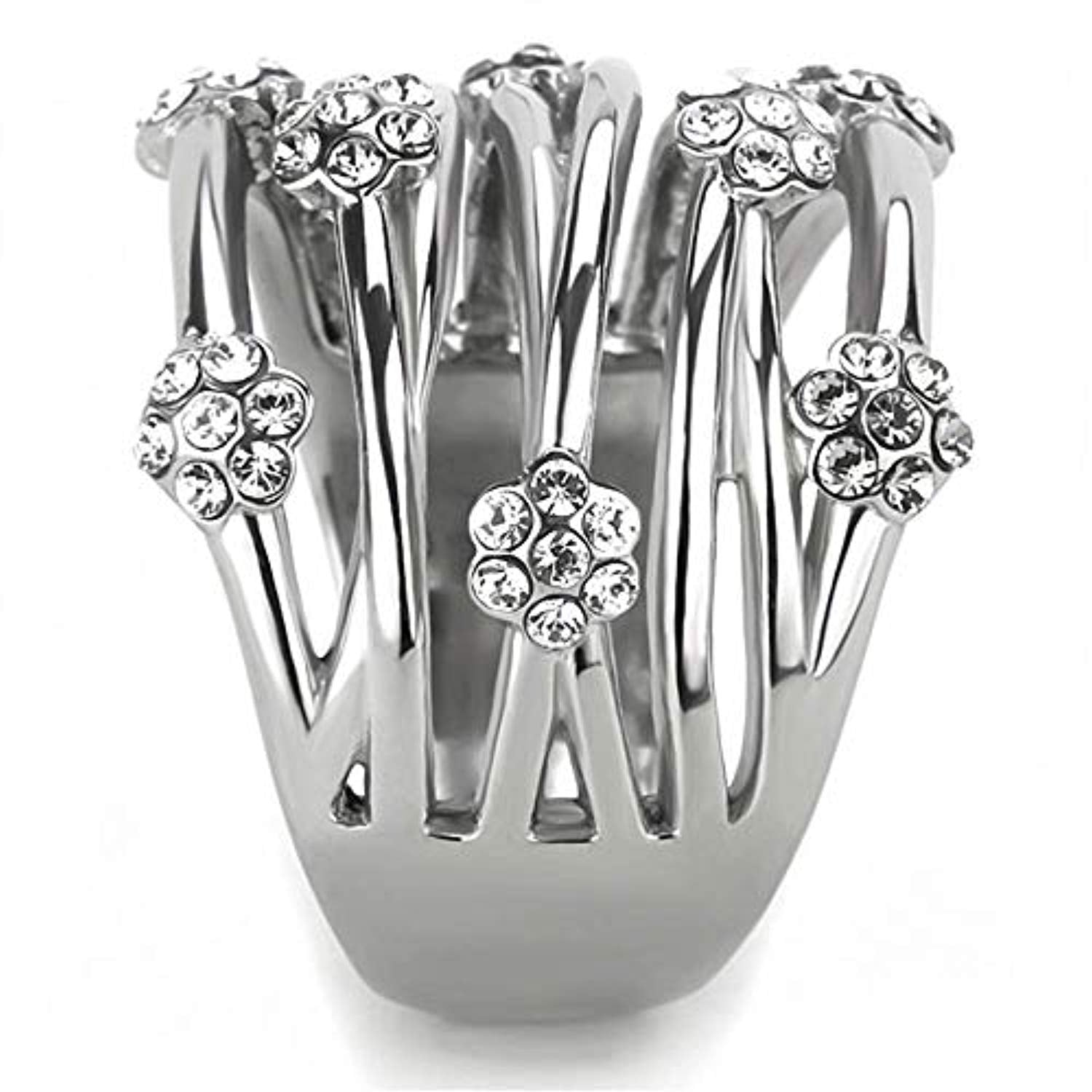 WildKlass Stainless Steel Flower Ring High Polished (no Plating) Women Top Grade Crystal Clear