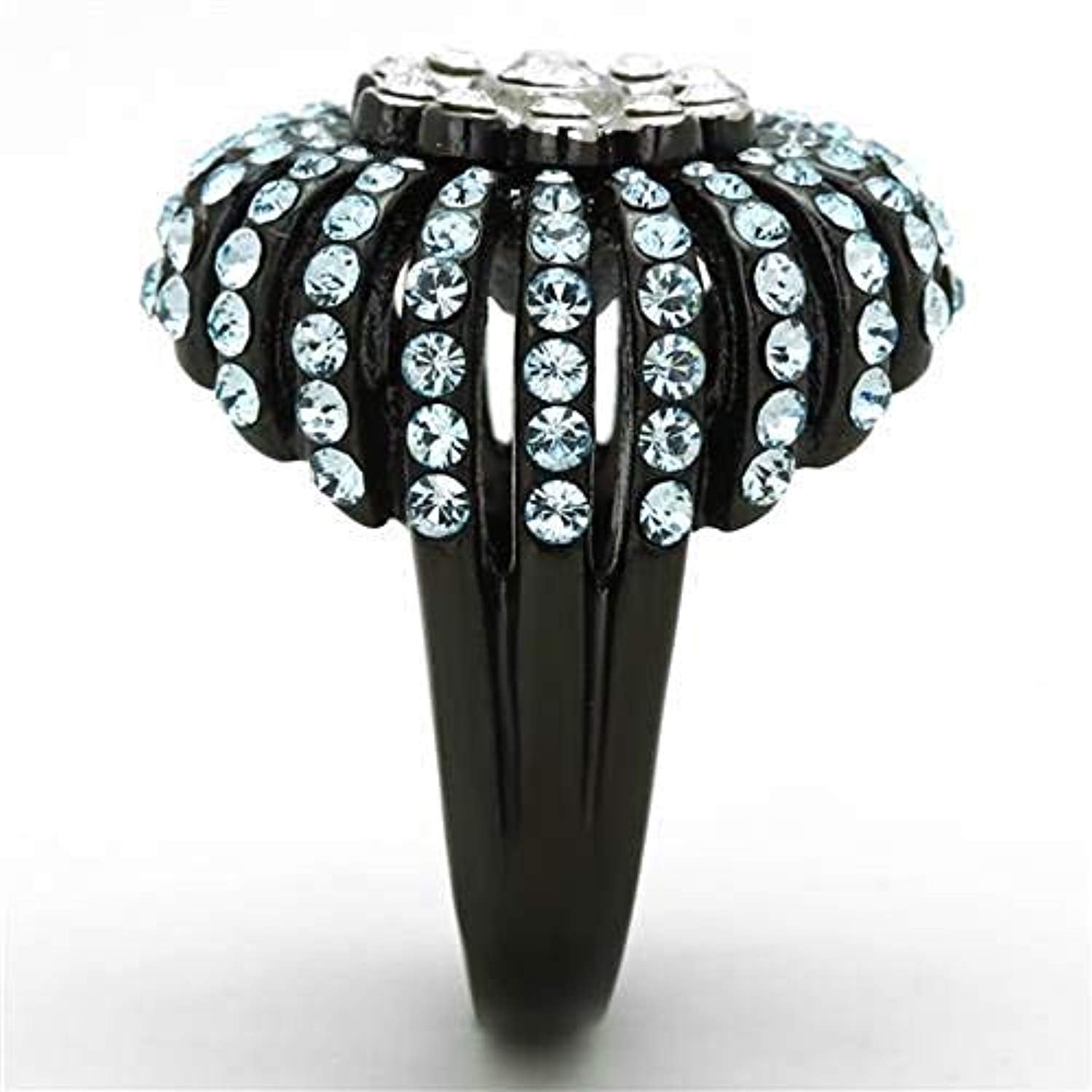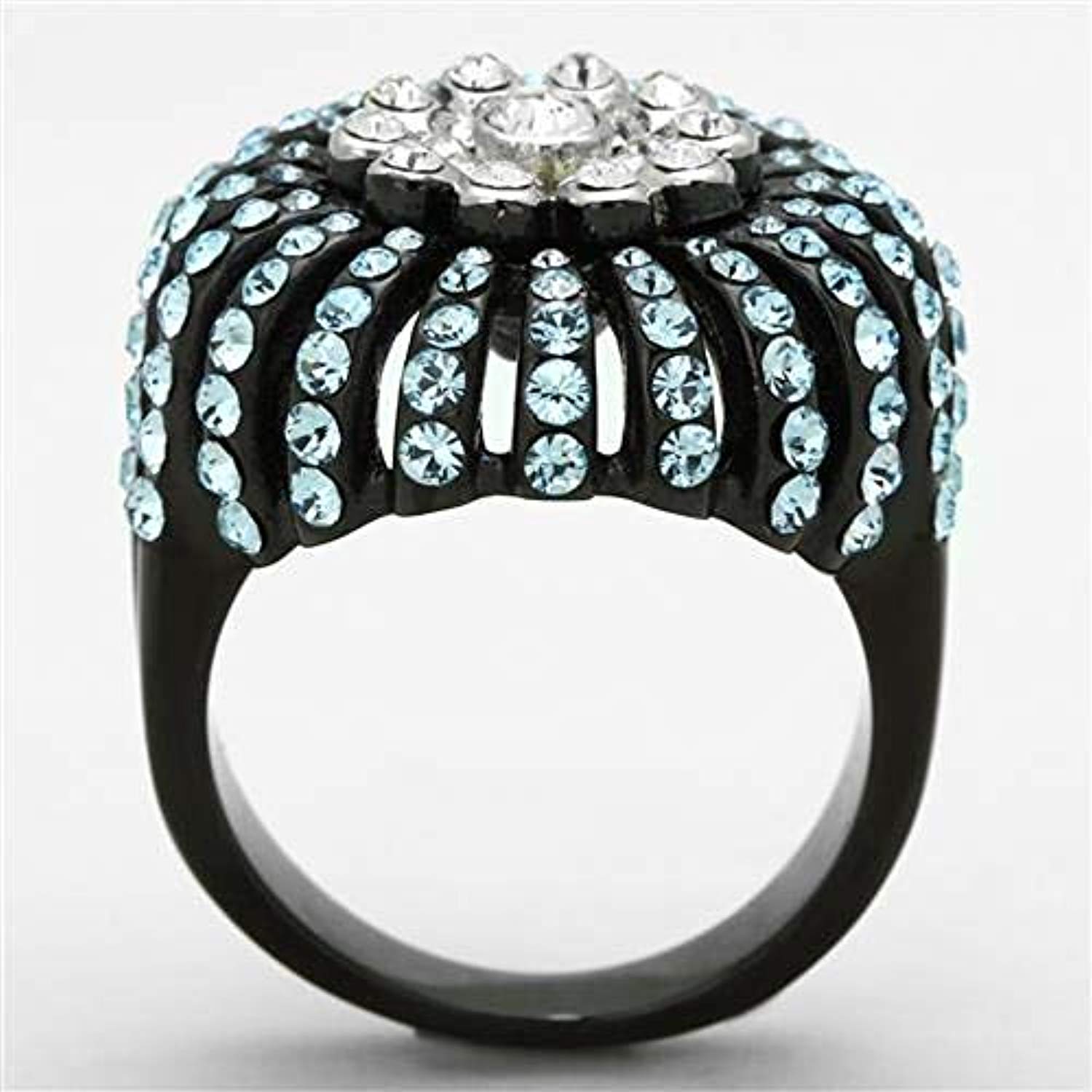 WildKlass Stainless Steel Flower Ring Two-Tone IP Black Women Top Grade Crystal Sea Blue