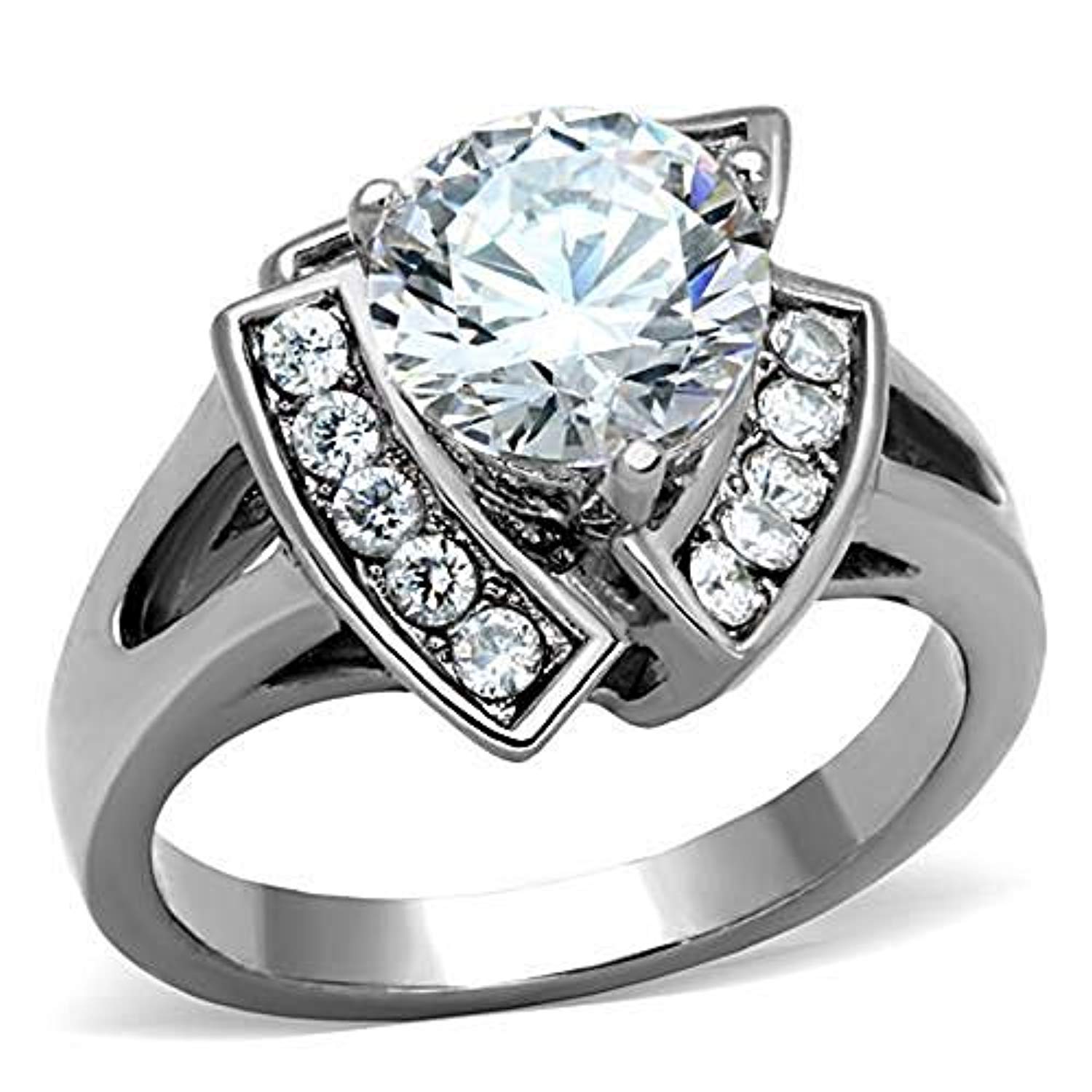 DA282 IP Black(Ion Plating) Stainless Steel Ring with AAA Grade CZ in Clear