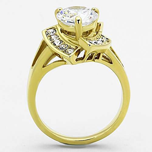 WildKlass Stainless Steel Halo Ring IP Gold Women AAA Grade CZ Clear