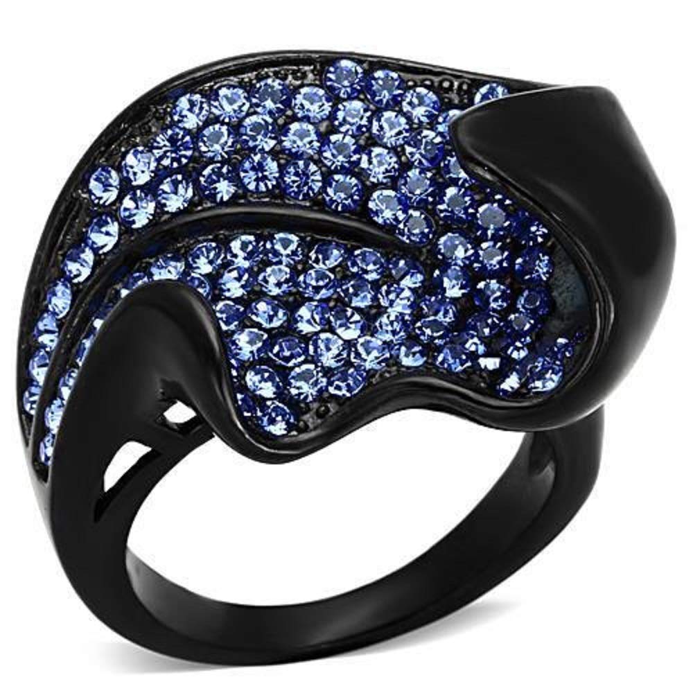 WildKlass Stainless Steel Pave Ring IP Black Women Top Grade Crystal Sapphire