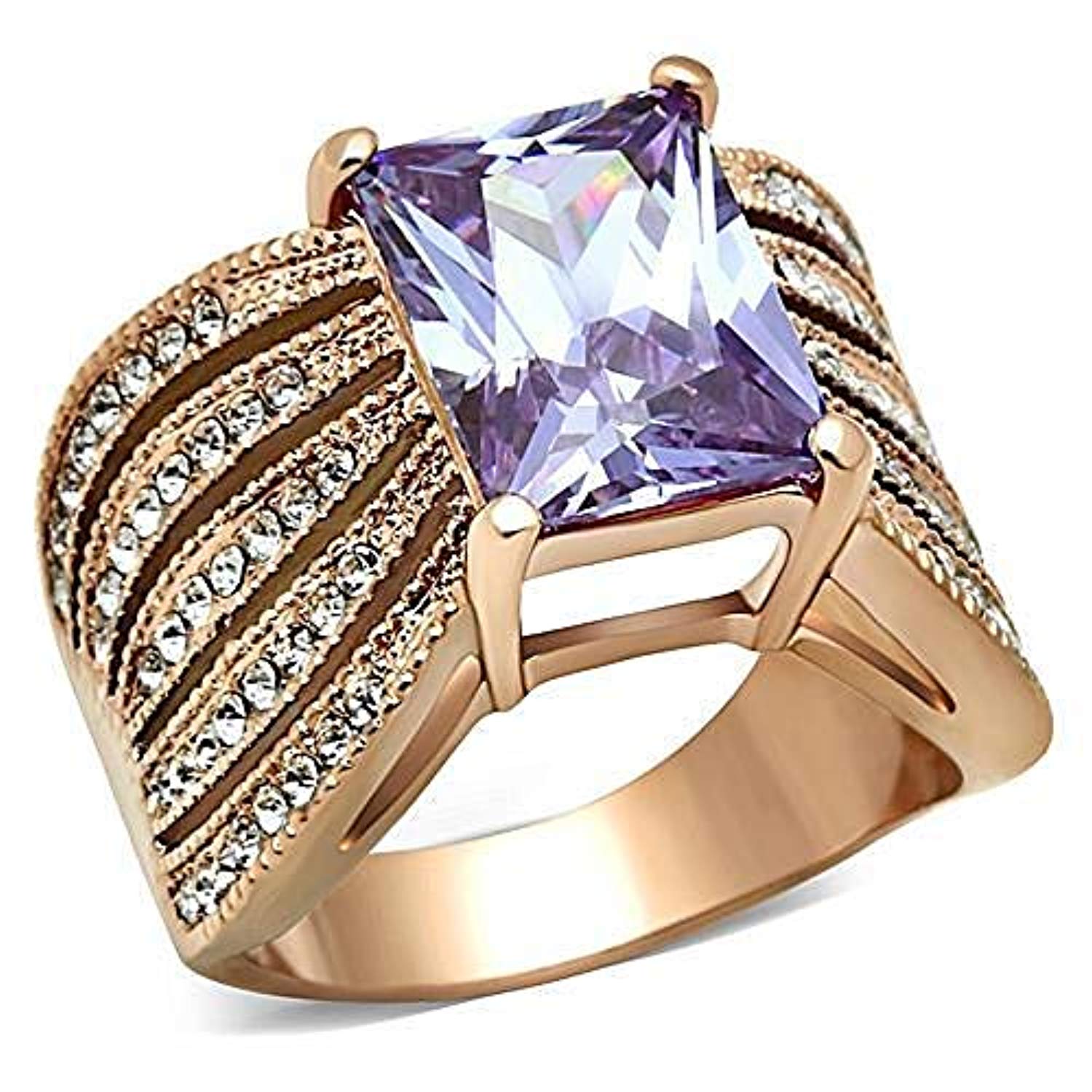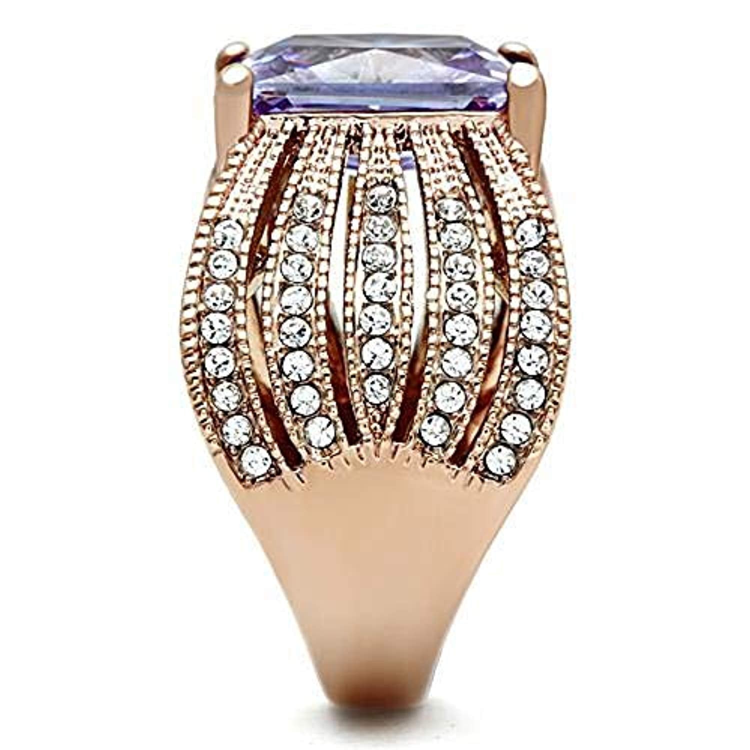 WildKlass Stainless Steel Pave Ring IP Rose Gold Women AAA Grade CZ Light Amethyst