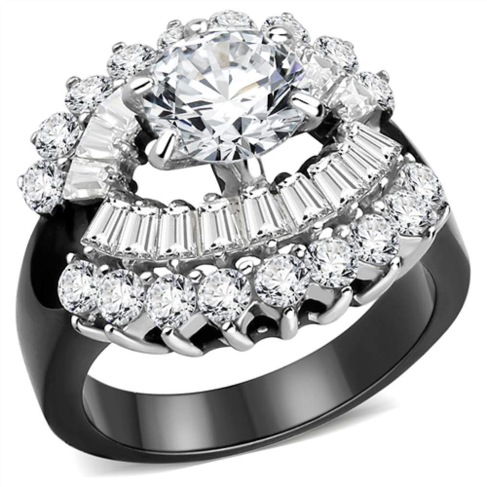 DA282 IP Black(Ion Plating) Stainless Steel Ring with AAA Grade CZ in Clear