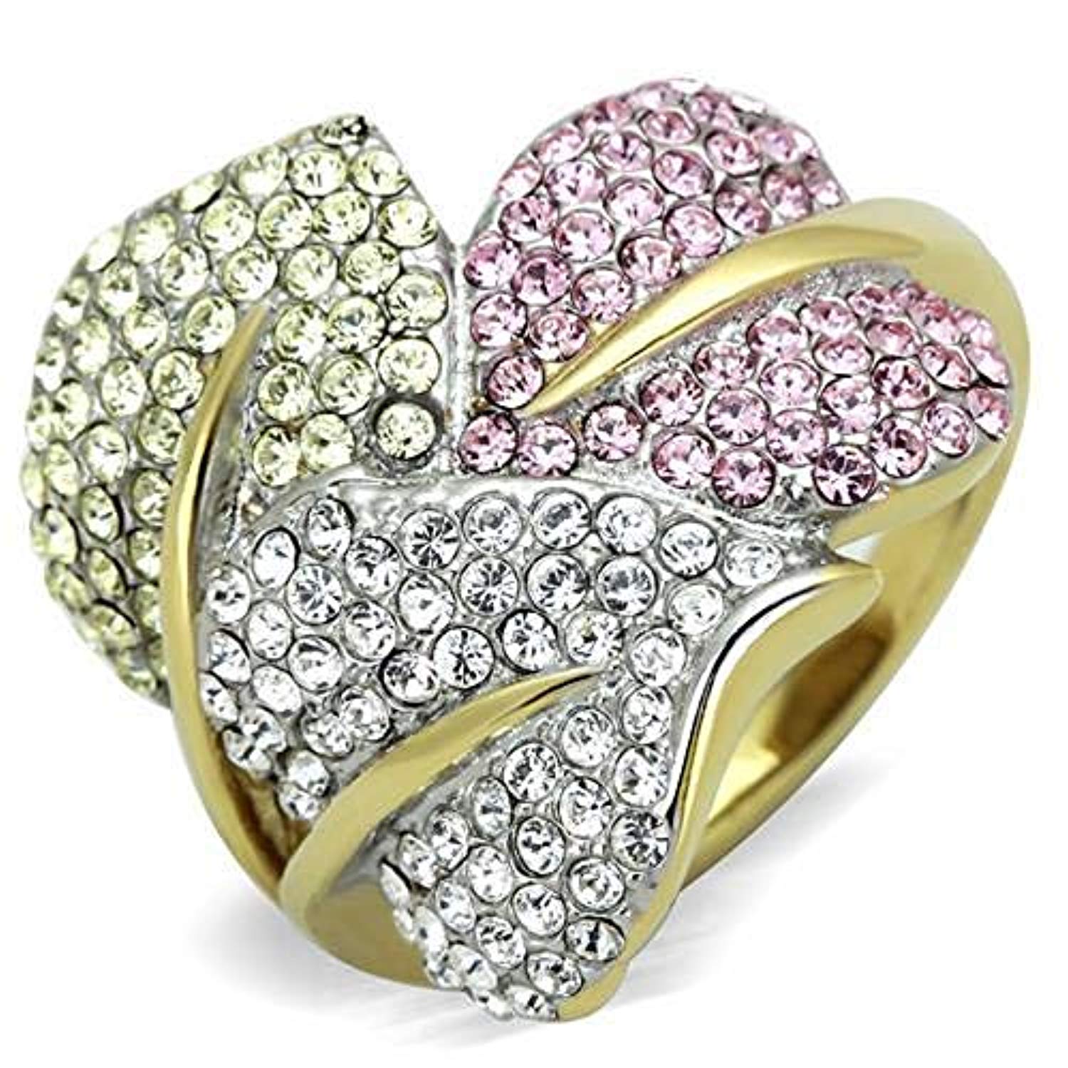 WildKlass Stainless Steel Pave Ring Two-Tone IP Gold Women Top Grade Crystal Multi Color
