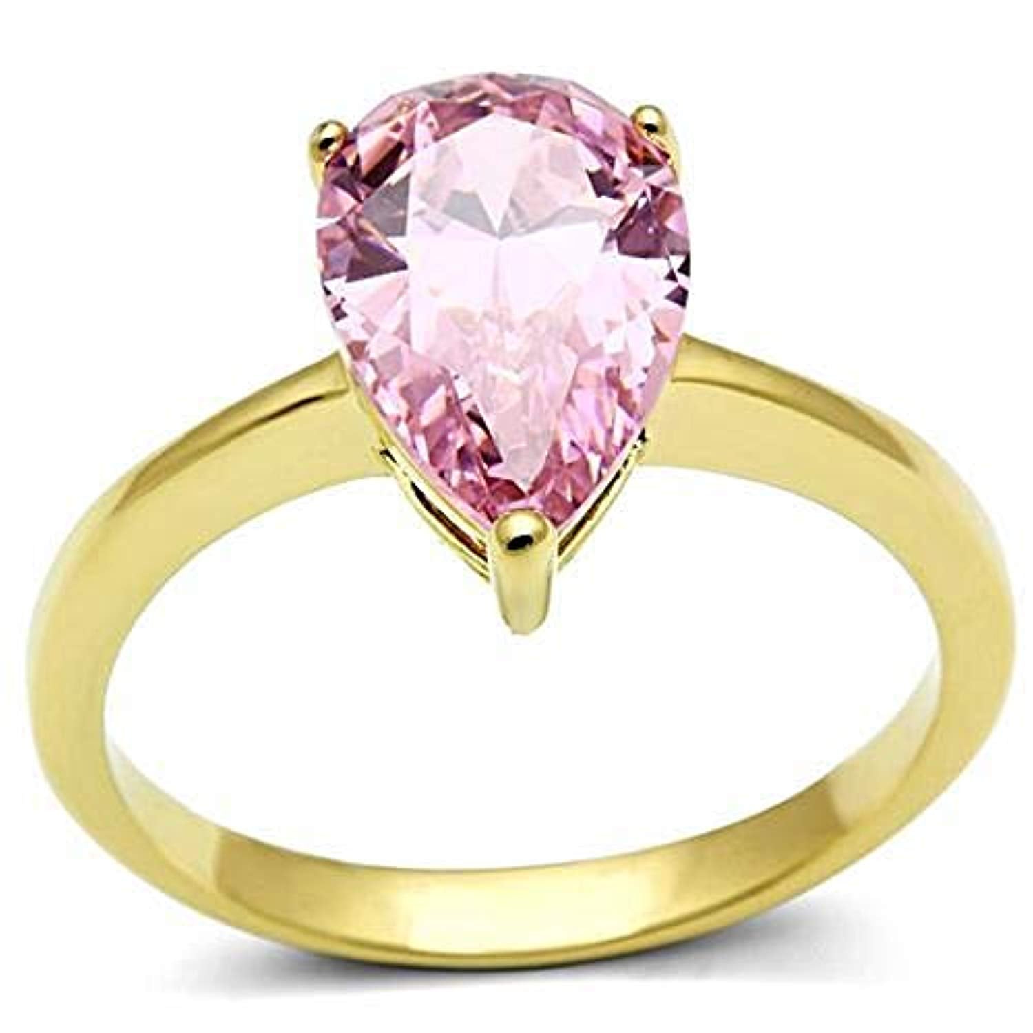 WildKlass Stainless Steel Pear Ring IP Gold Women AAA Grade CZ Rose
