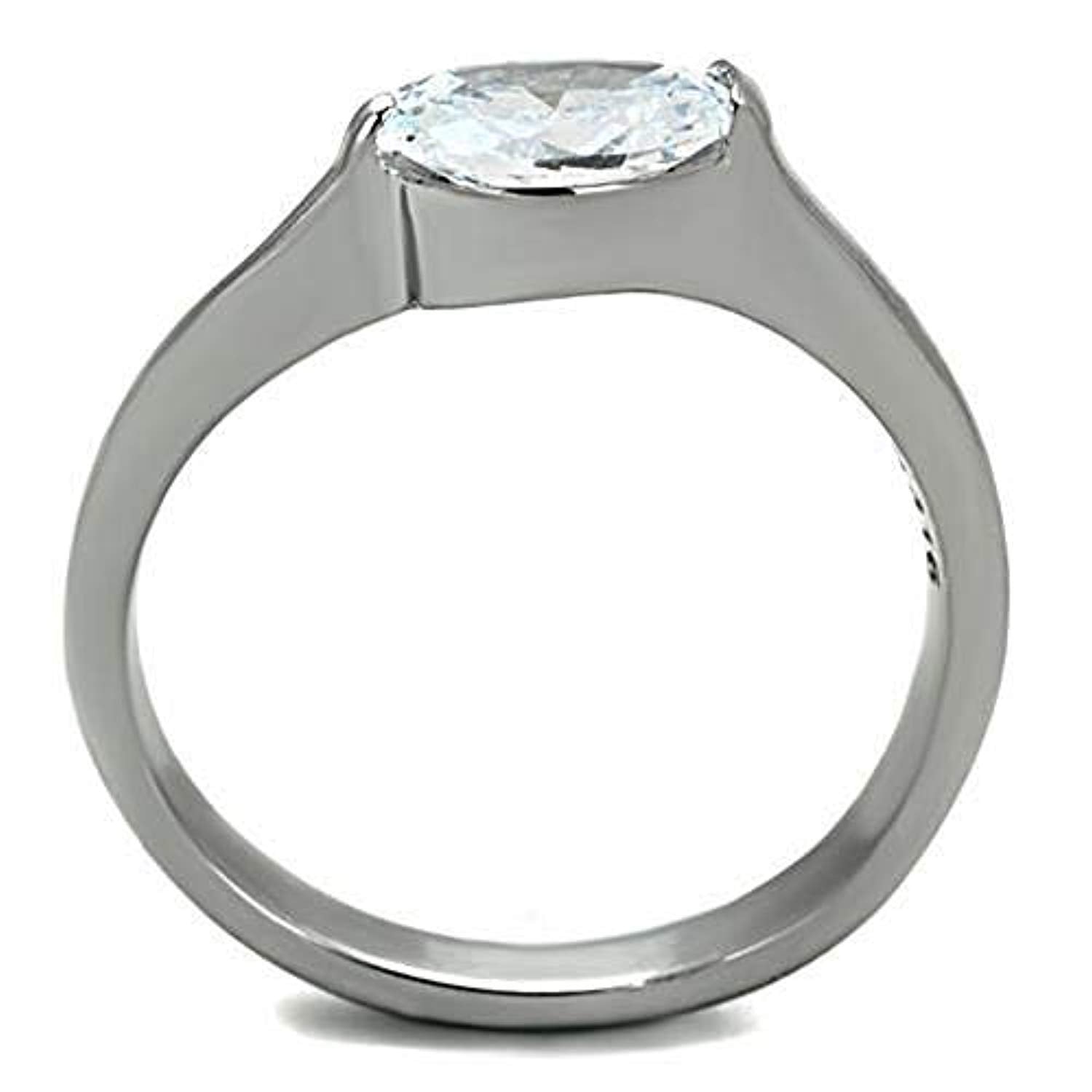WildKlass Stainless Steel Solitaire Ring High Polished (no Plating) Women AAA Grade CZ Clear