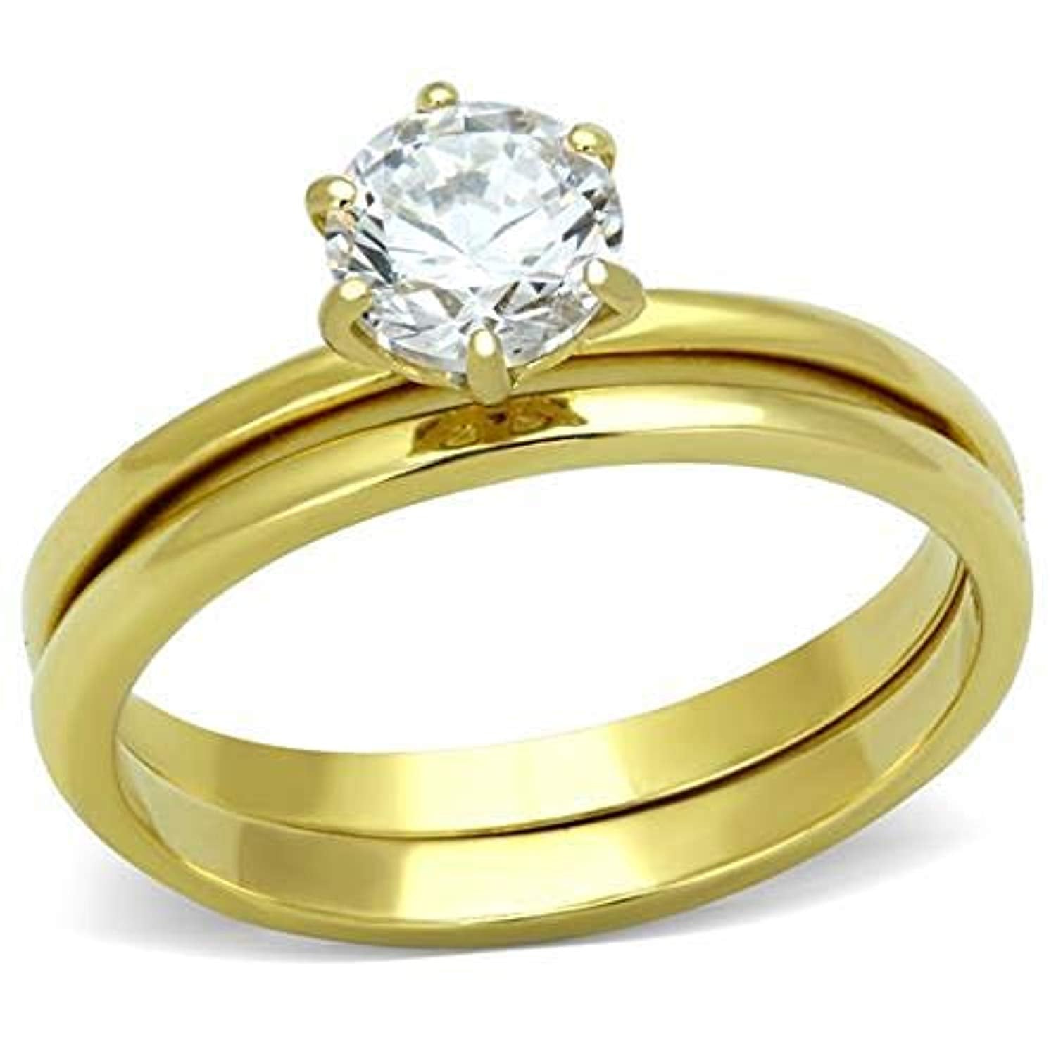 WildKlass Stainless Steel Solitaire Ring IP Gold Women AAA Grade CZ Clear