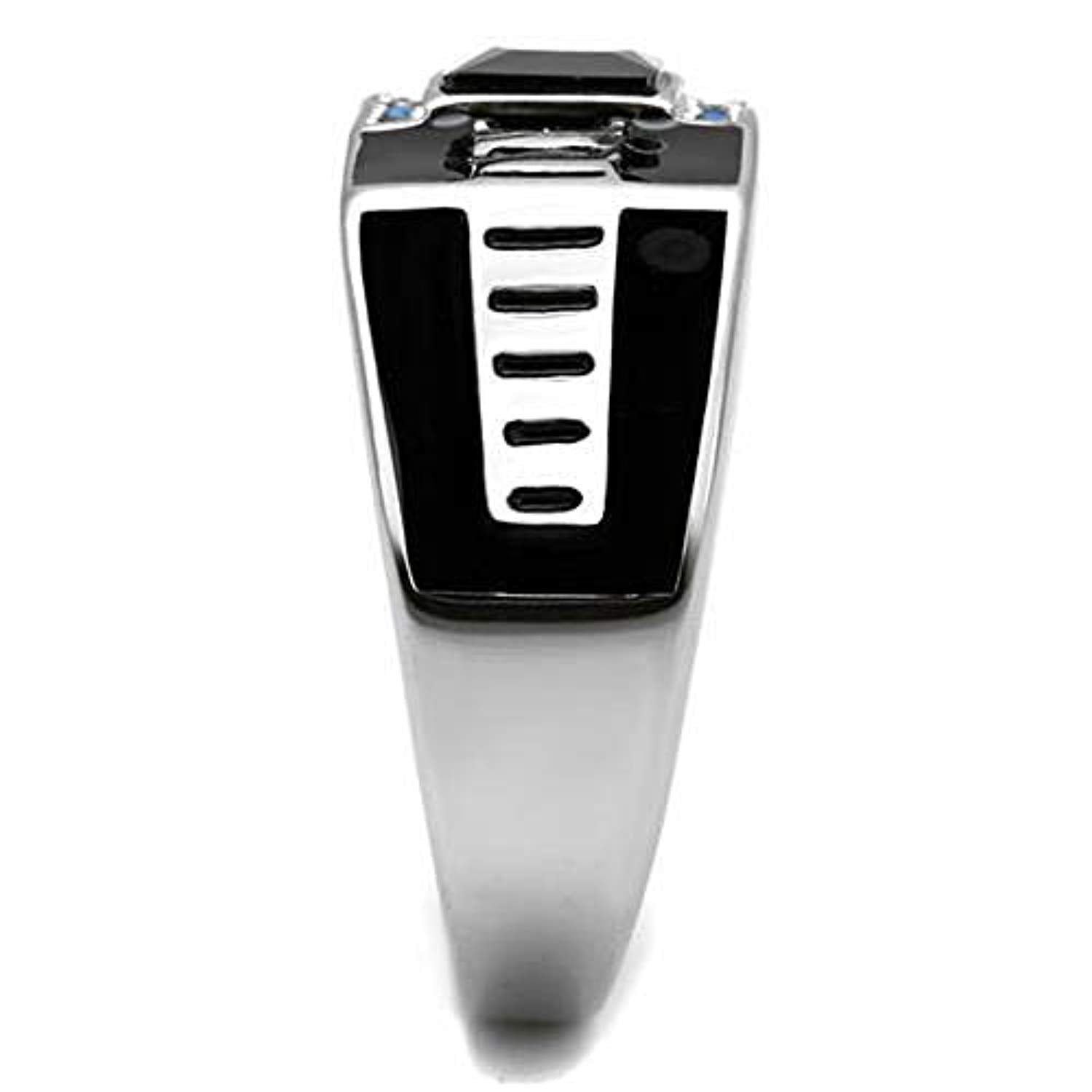 WildKlass Stainless Steel Ring High Polished Men AAA Grade CZ Black Diamond