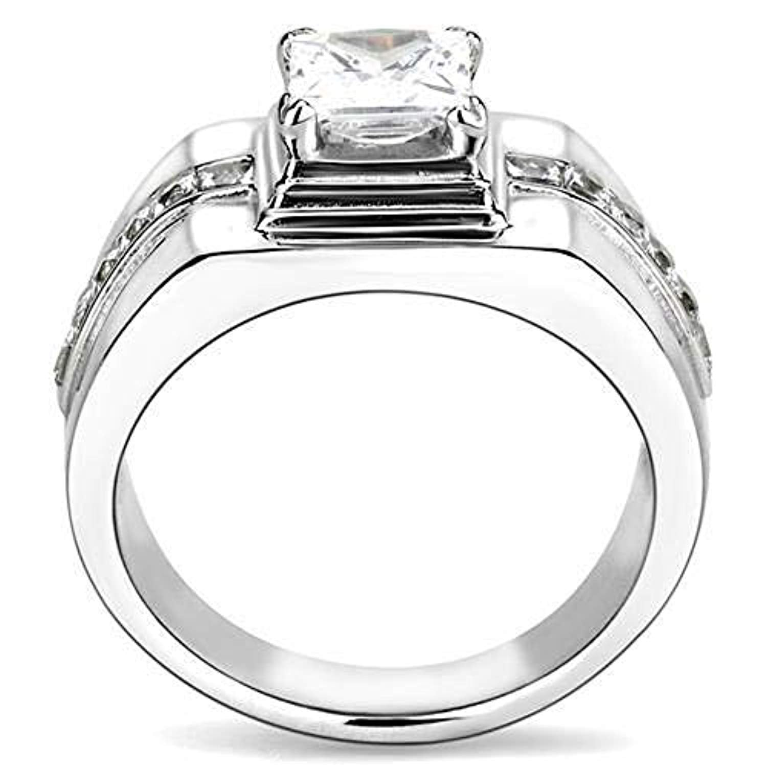 WildKlass Stainless Steel Ring High Polished Men AAA Grade CZ Clear