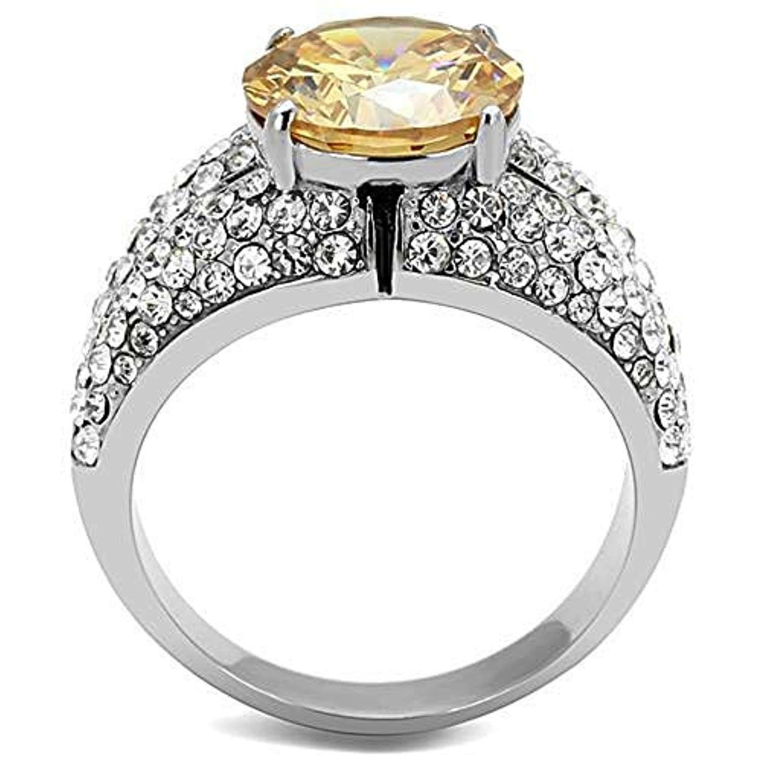 WildKlass Stainless Steel Ring High Polished Women AAA Grade CZ Champagne