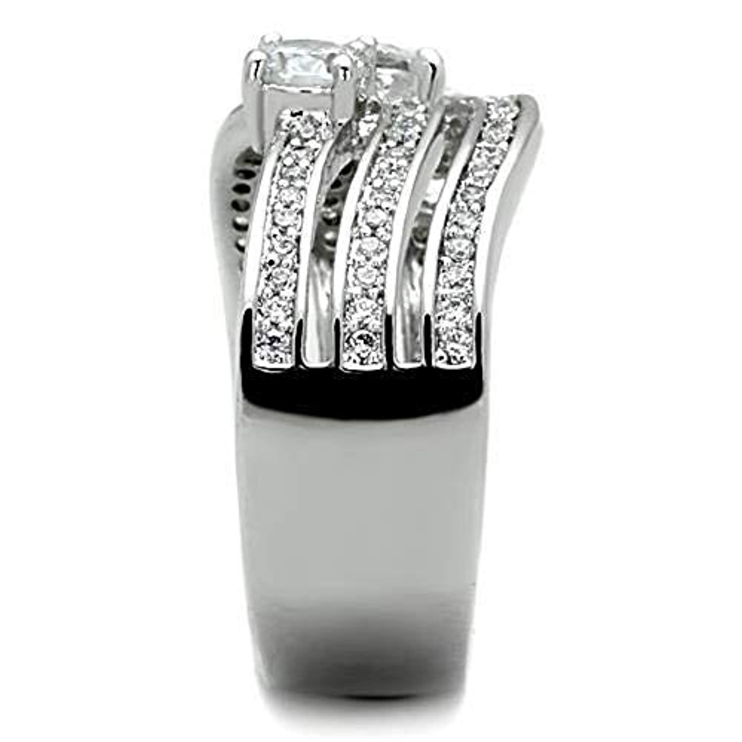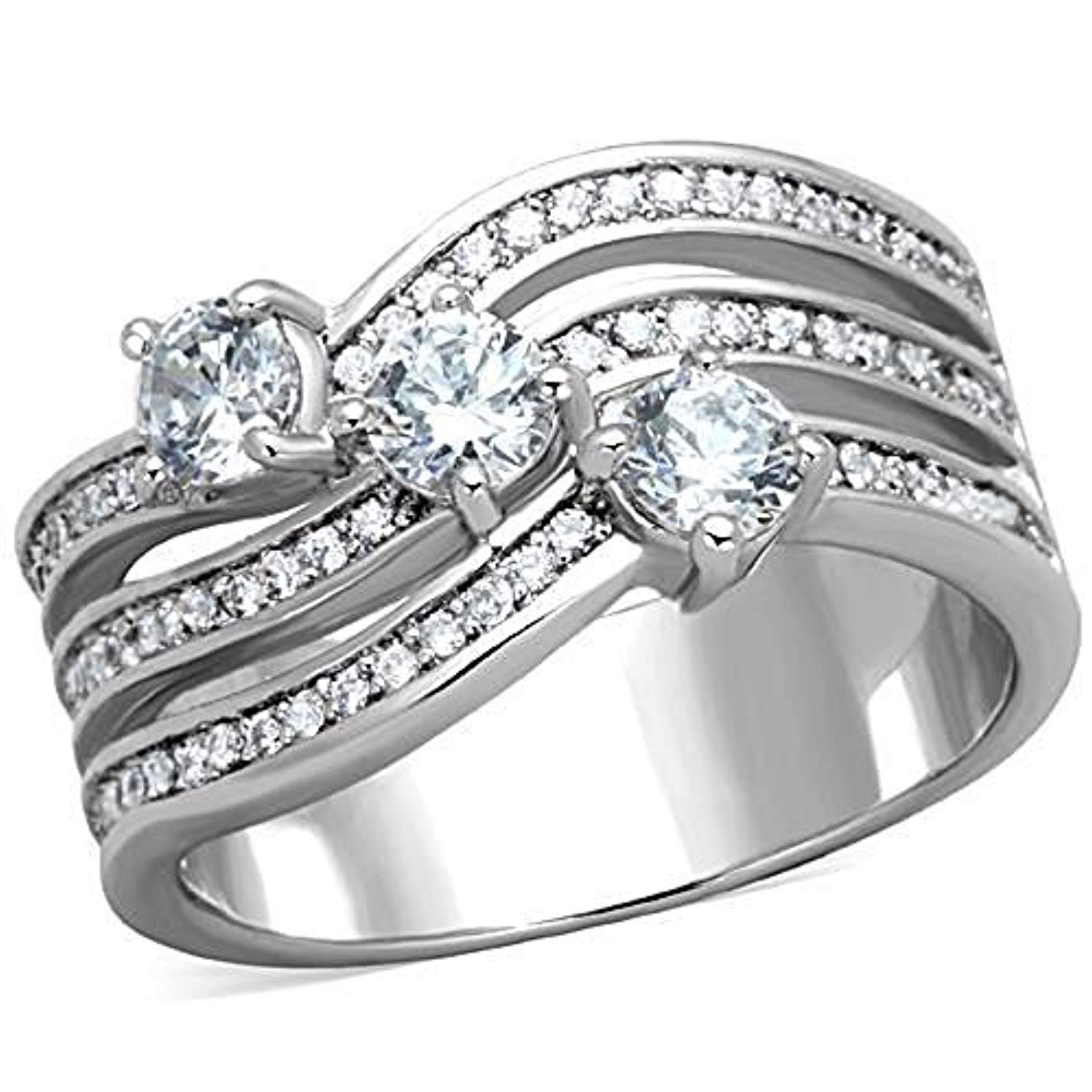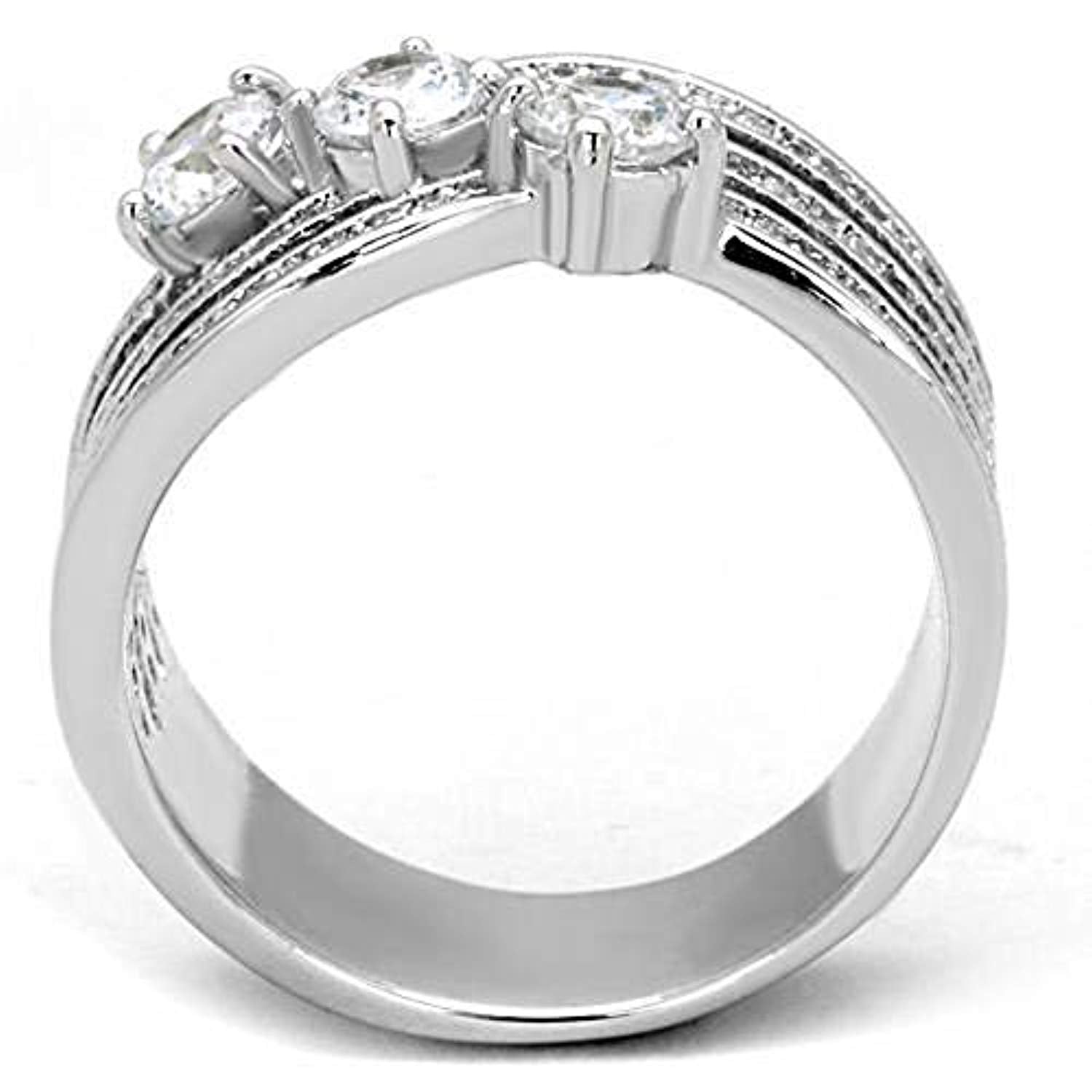 WildKlass Stainless Steel Ring High Polished (no Plating) Women AAA Grade with 3 CZ Clear
