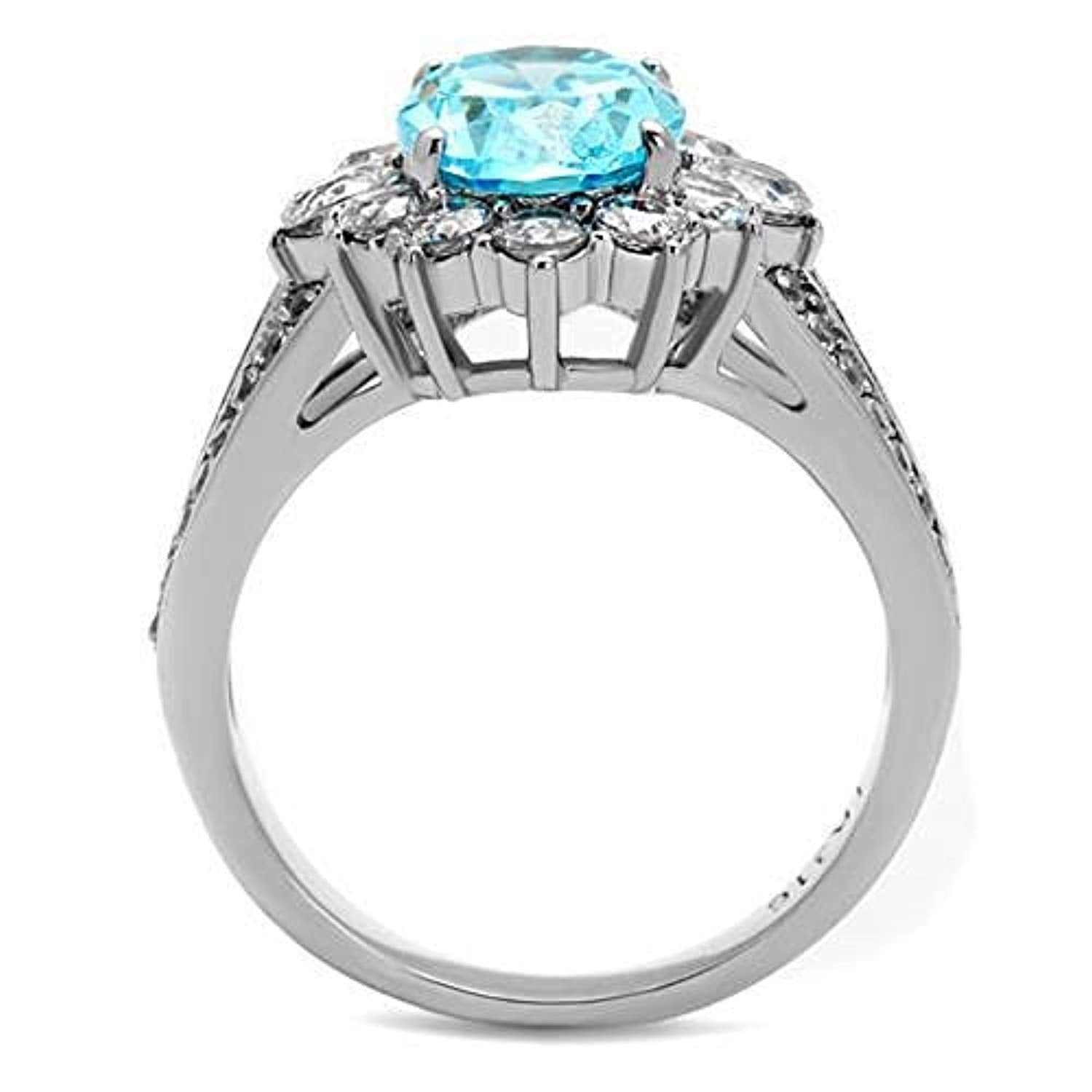 WildKlass Stainless Steel Ring High Polished Women AAA Grade CZ Sea Blue