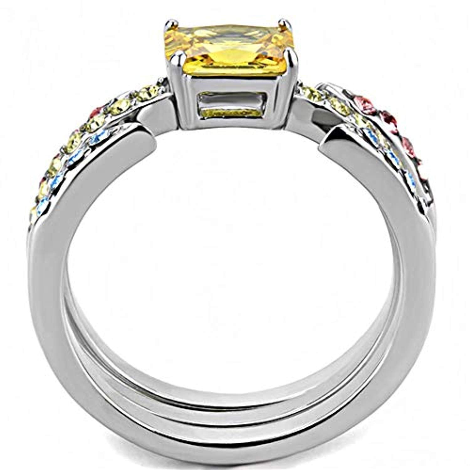 WildKlass Stainless Steel Ring High Polished Women AAA Grade CZ Topaz