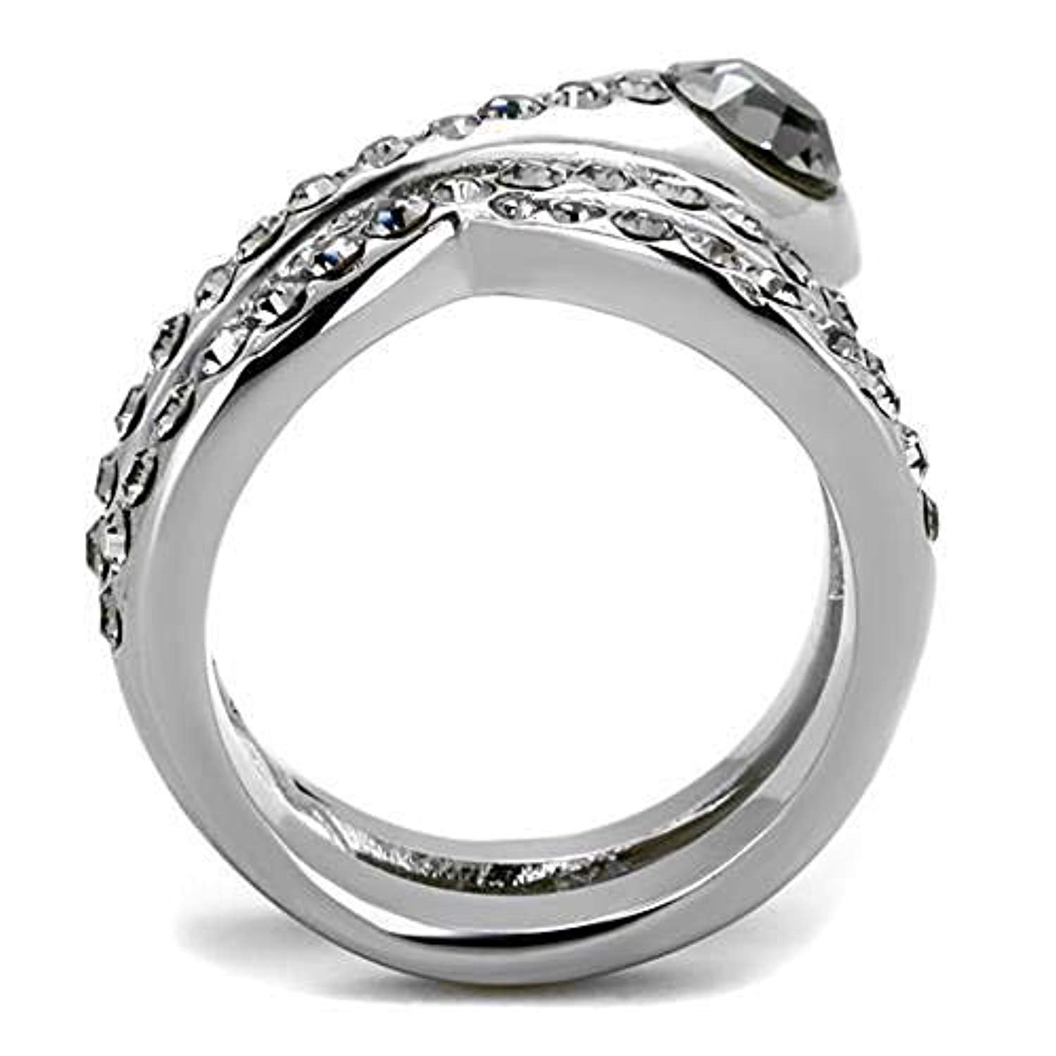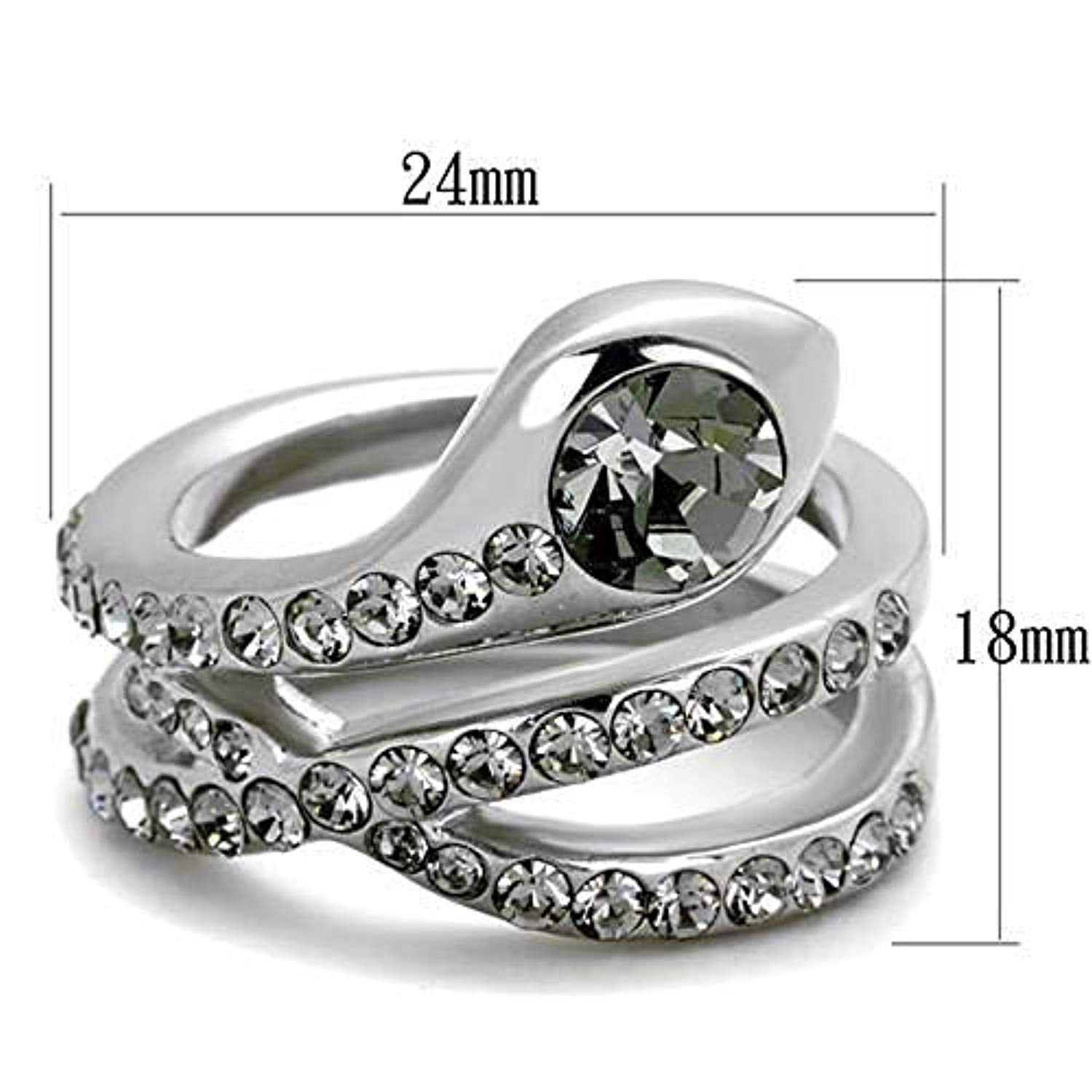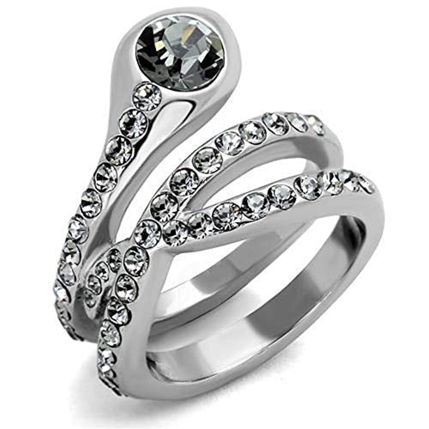 WildKlass Stainless Steel Ring High Polished (no Plating) Women Top Grade Crystal Black Diamond