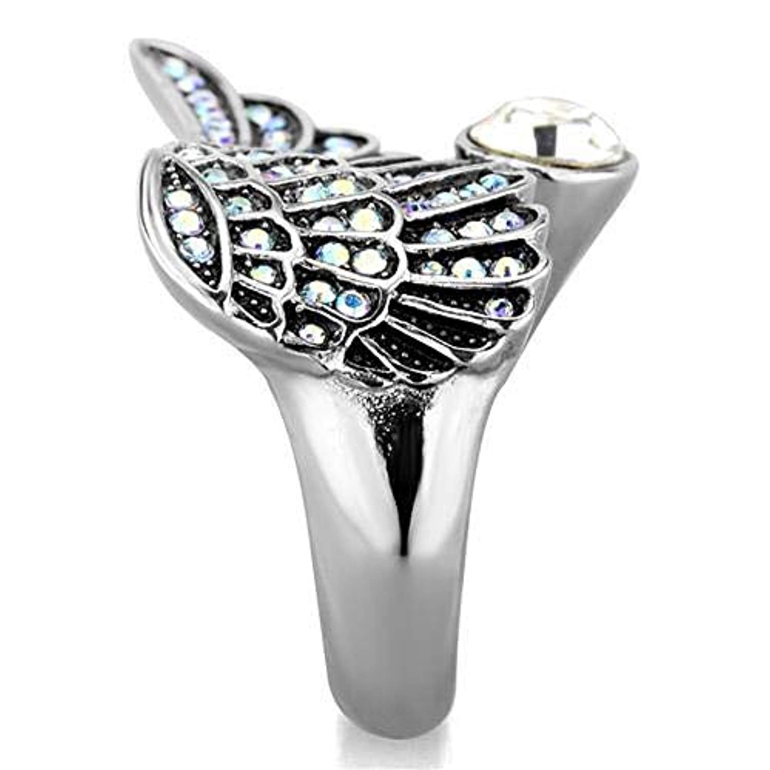 WildKlass Stainless Steel Winged Ring High Polished (no Plating) Women Top Grade Crystal Clear
