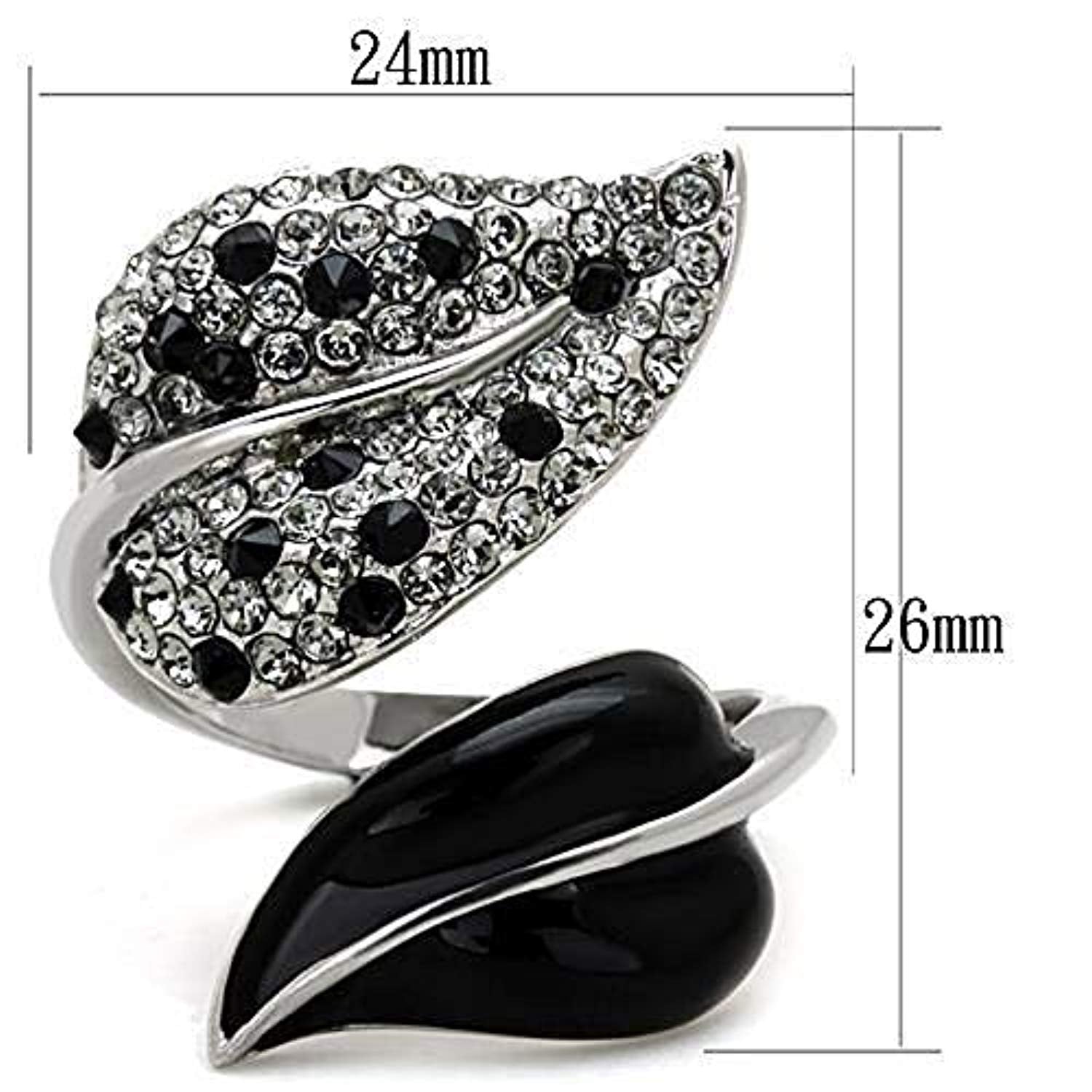 WildKlass Stainless Steel Ring High Polished (no Plating) Women Top Grade Crystal Jet Leaf
