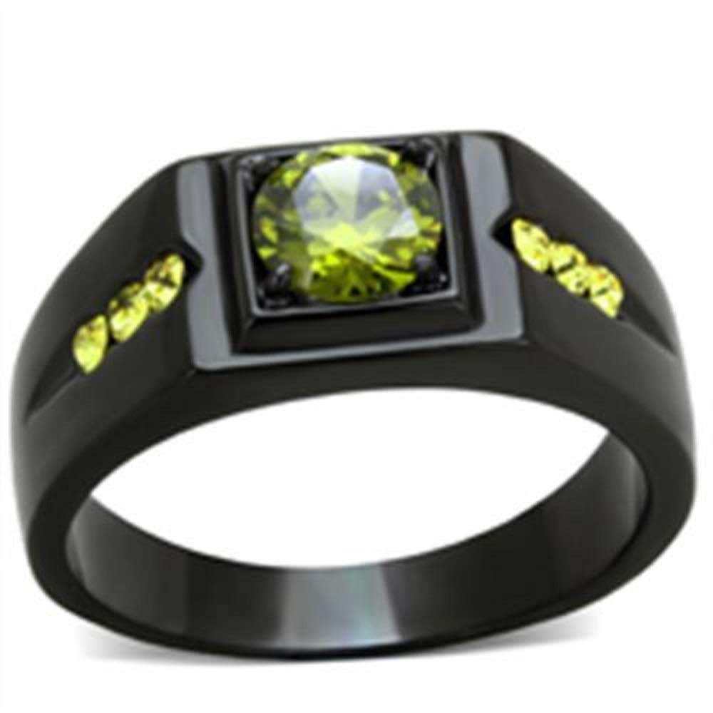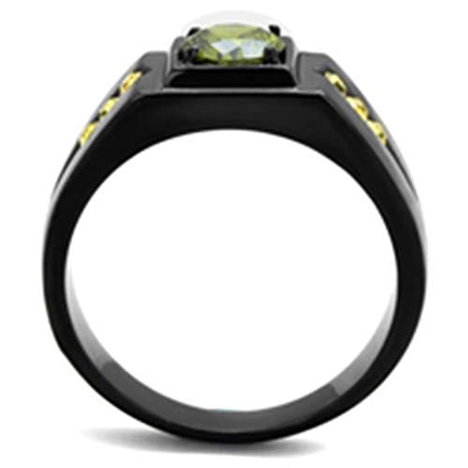 WildKlass Stainless Steel Ring IP Black Men AAA Grade CZ Olivine Color