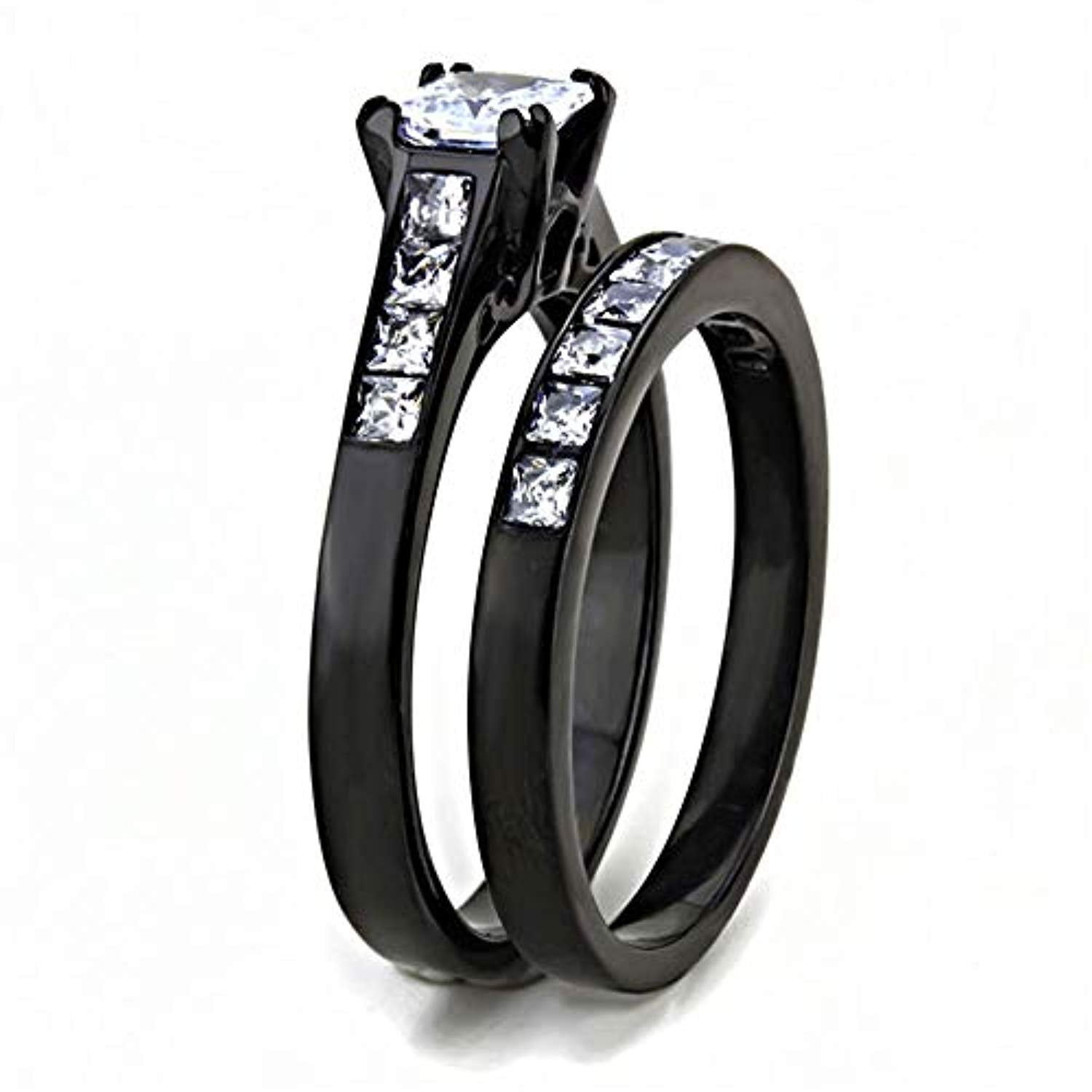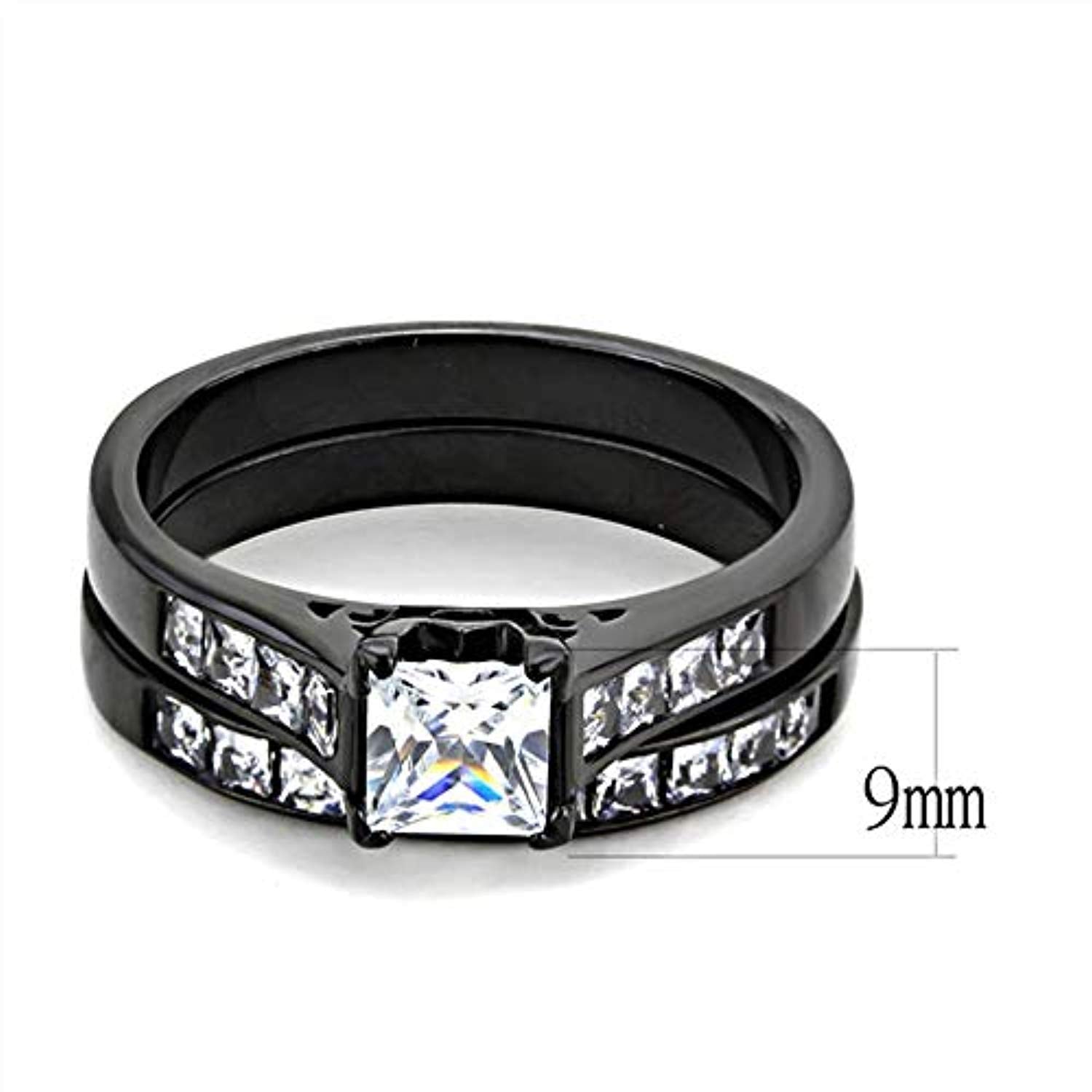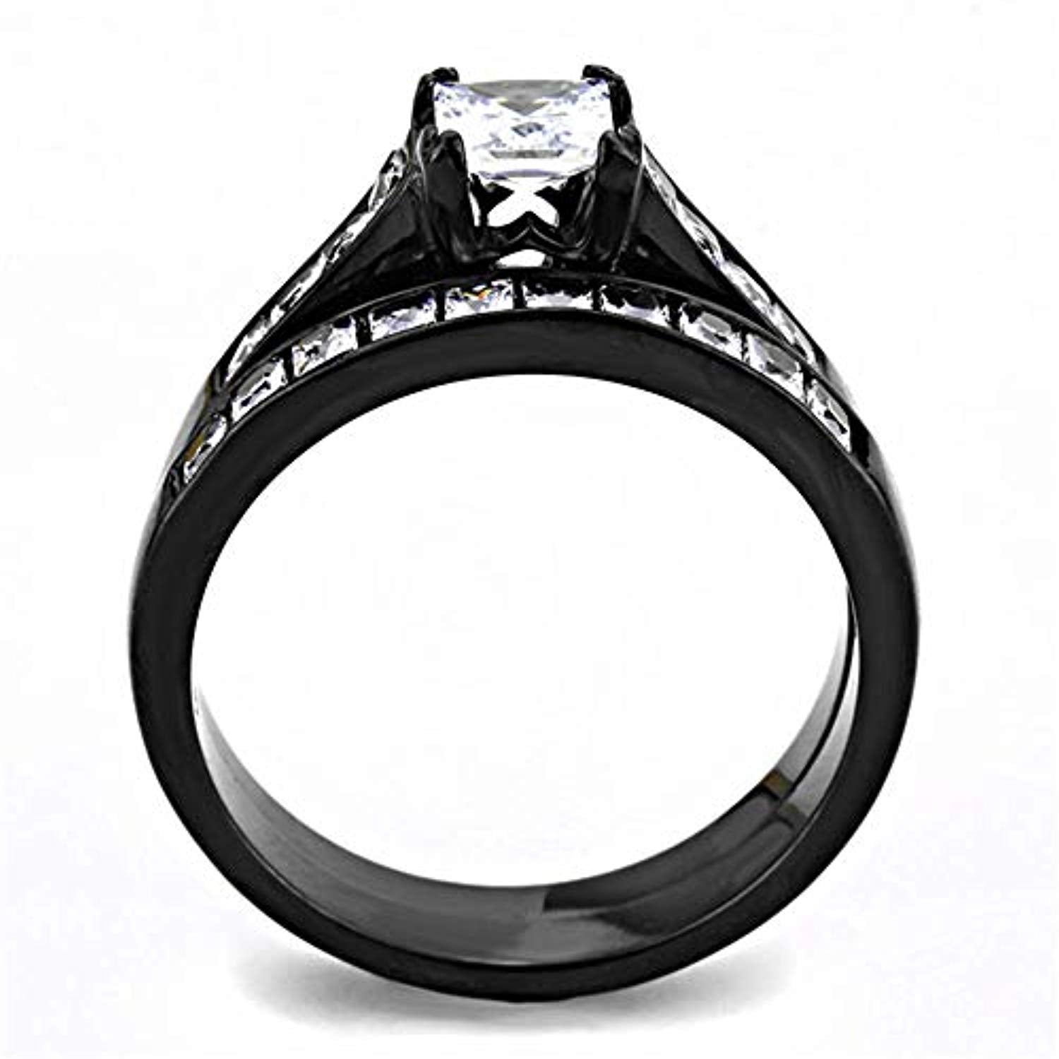 DA282 IP Black(Ion Plating) Stainless Steel Ring with AAA Grade CZ in Clear