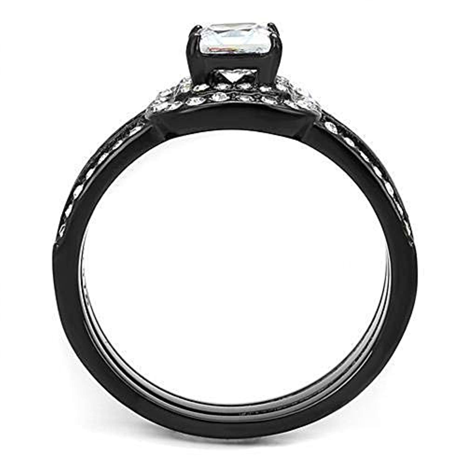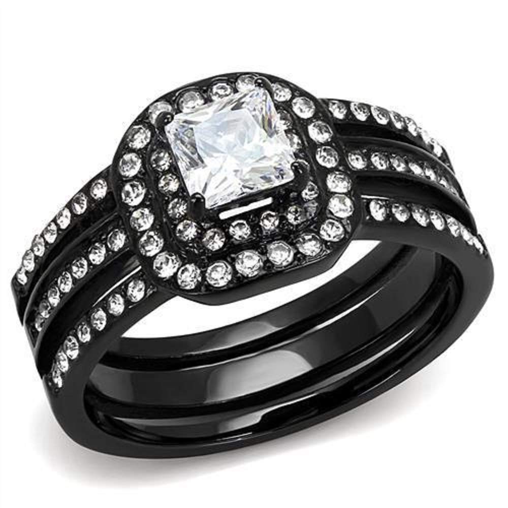 DA282 IP Black(Ion Plating) Stainless Steel Ring with AAA Grade CZ in Clear