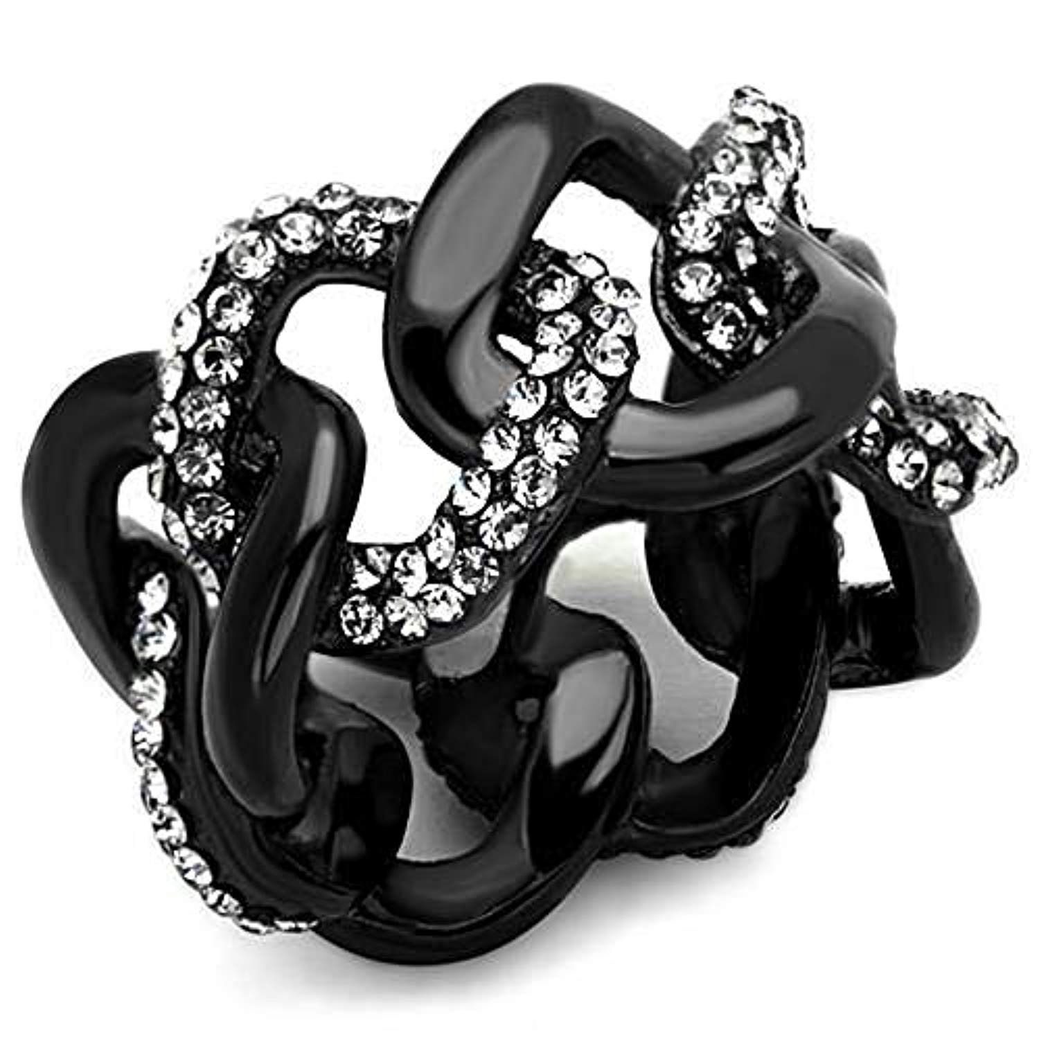 WildKlass Stainless Steel Ring IP Black Women Top Grade Crystal Black Diamond