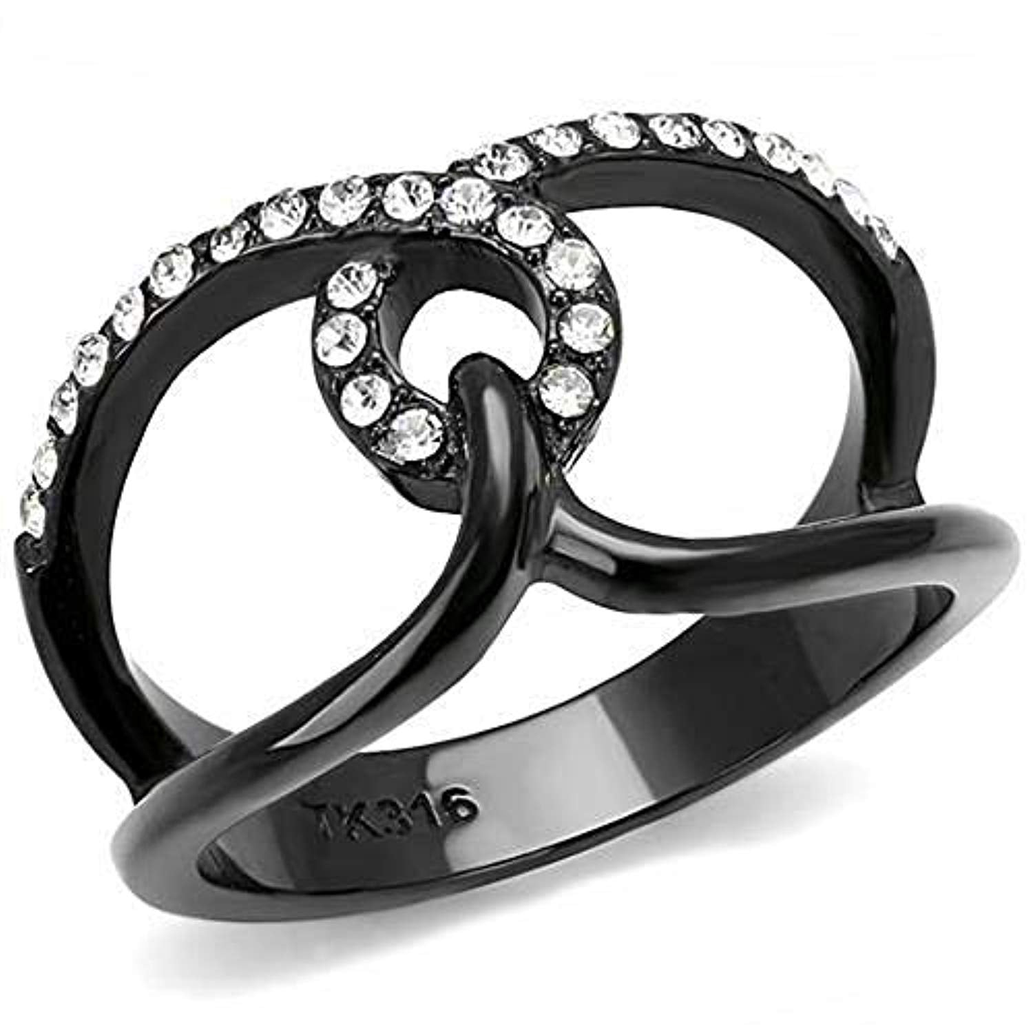 DA282 IP Black(Ion Plating) Stainless Steel Ring with AAA Grade CZ in Clear