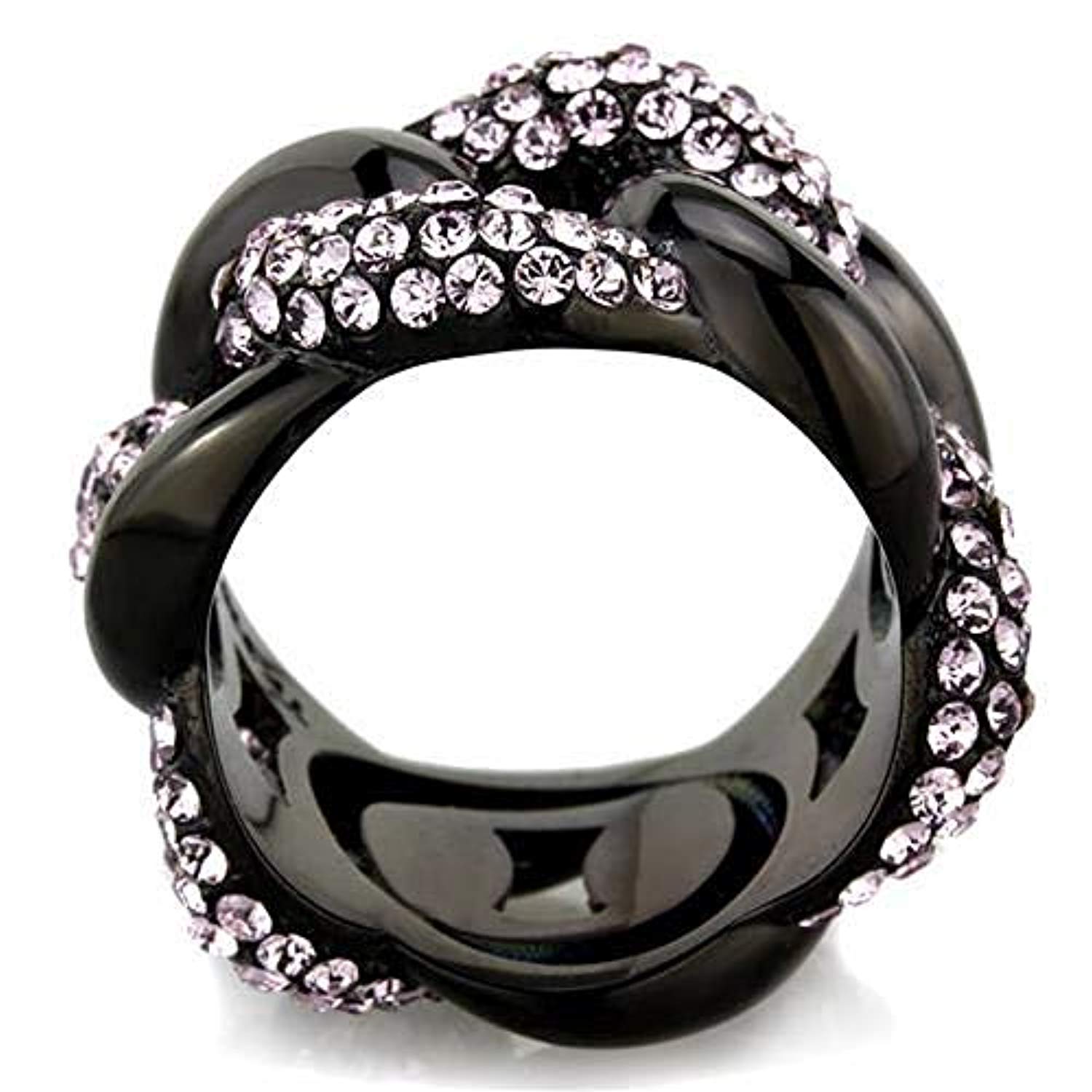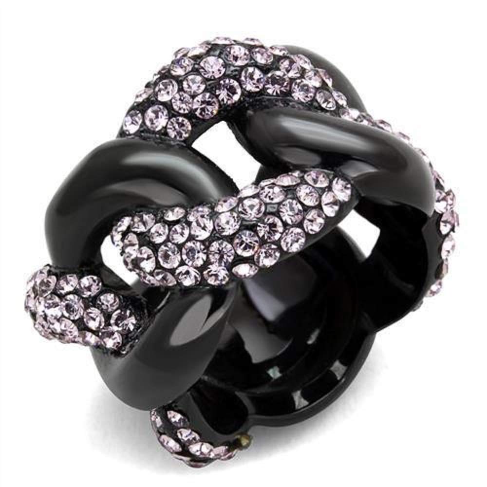 WildKlass Stainless Steel Ring IP Black Women Top Grade Crystal Light Amethyst