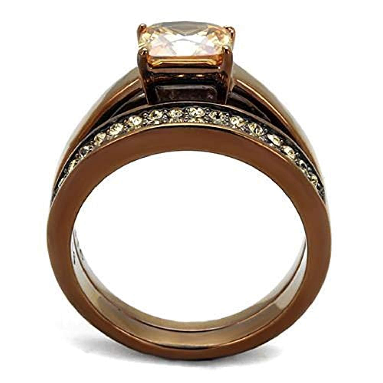 WildKlass Stainless Steel Ring IP Coffee Light Women AAA Grade CZ Champagne