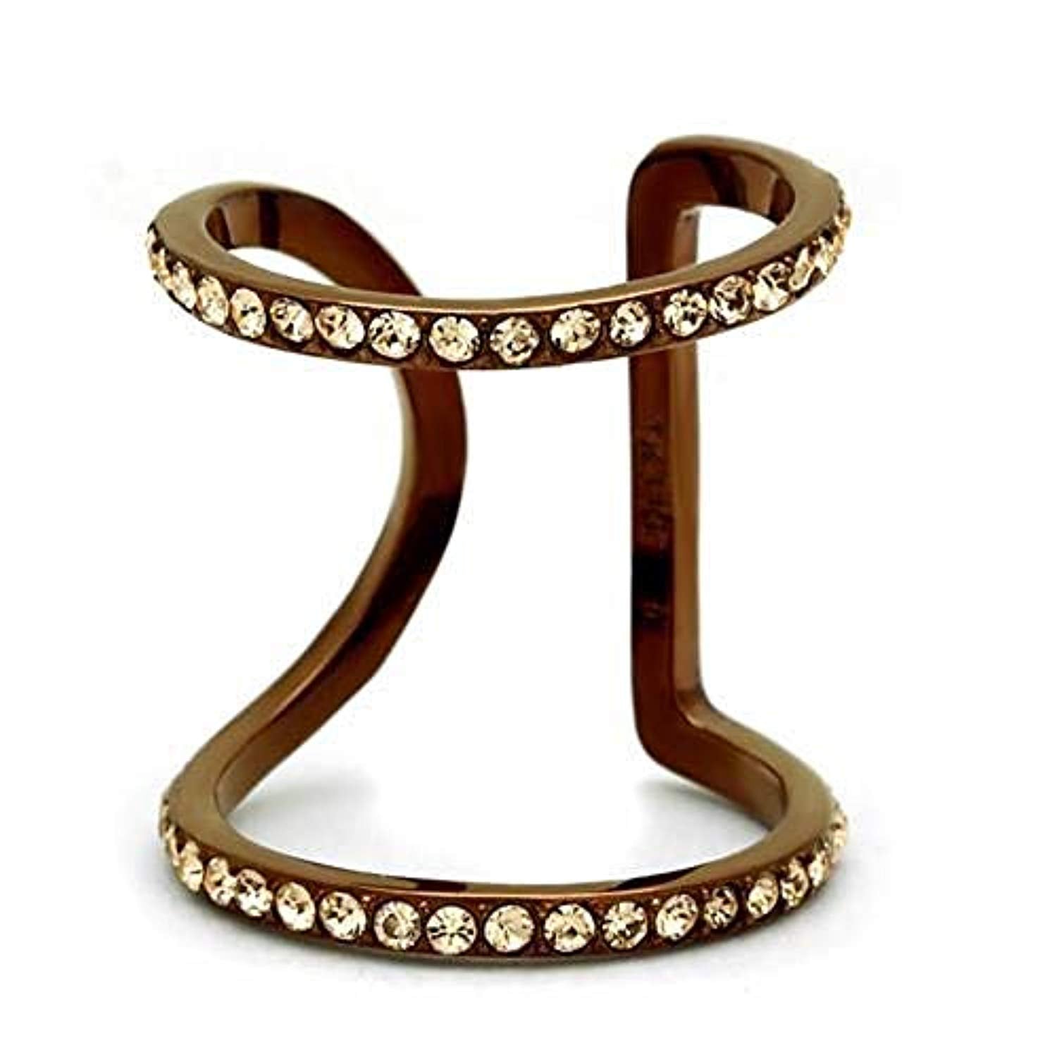 WildKlass Stainless Steel Ring IP Coffee Light Women Top Grade Crystal Light Peach