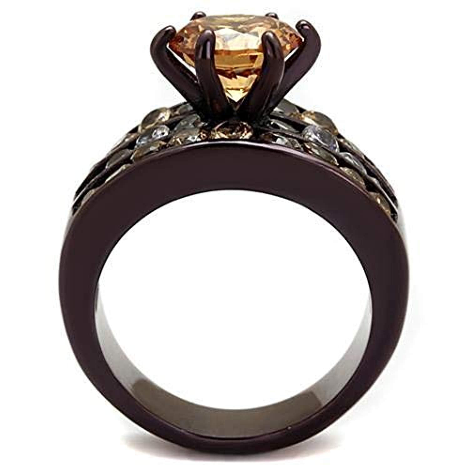 WildKlass Stainless Steel Ring IP Dark Brown (IP Coffee) Women AAA Grade CZ Champagne