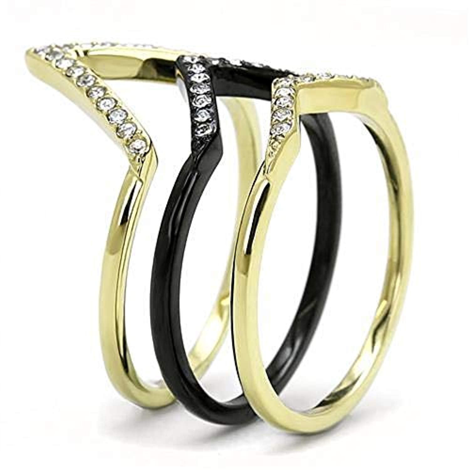 WildKlass Stainless Steel Ring IP Gold+ IP Black Women Top Grade Crystal Clear
