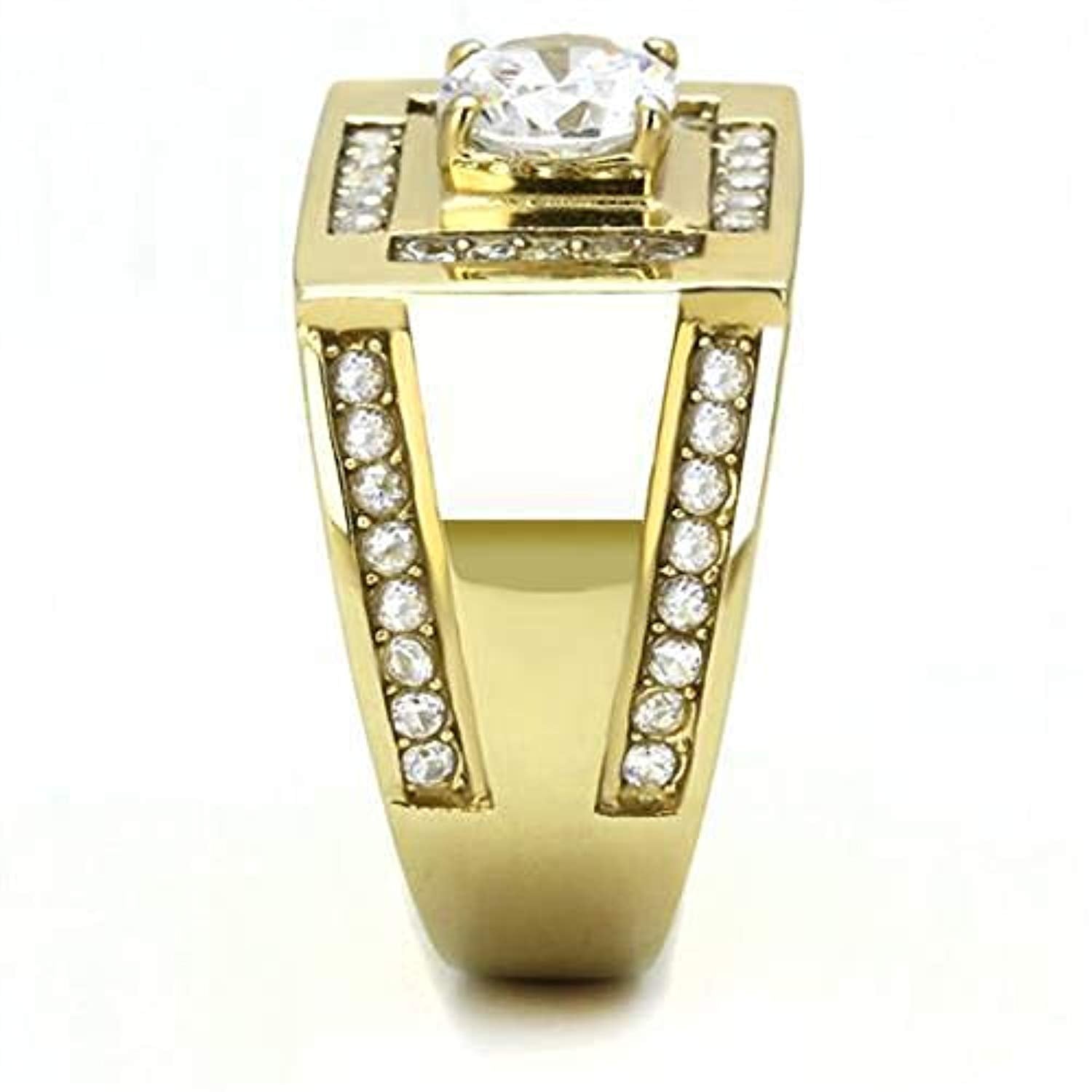 WildKlass Stainless Steel Ring IP GoldMen AAA Grade CZ Clear