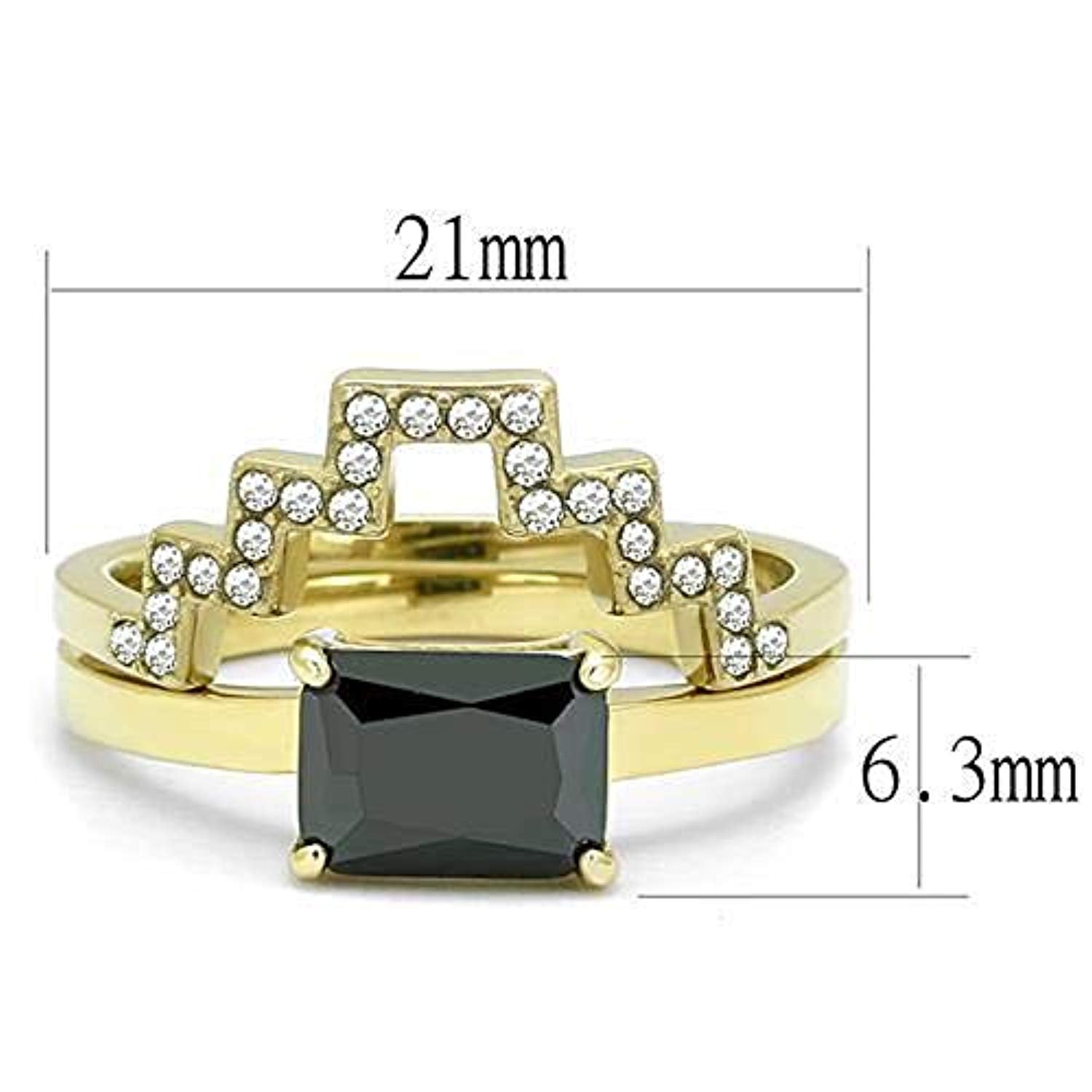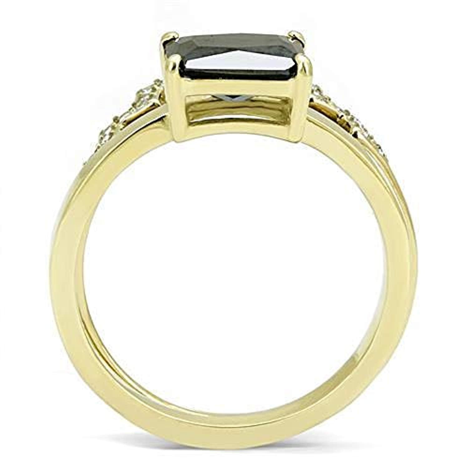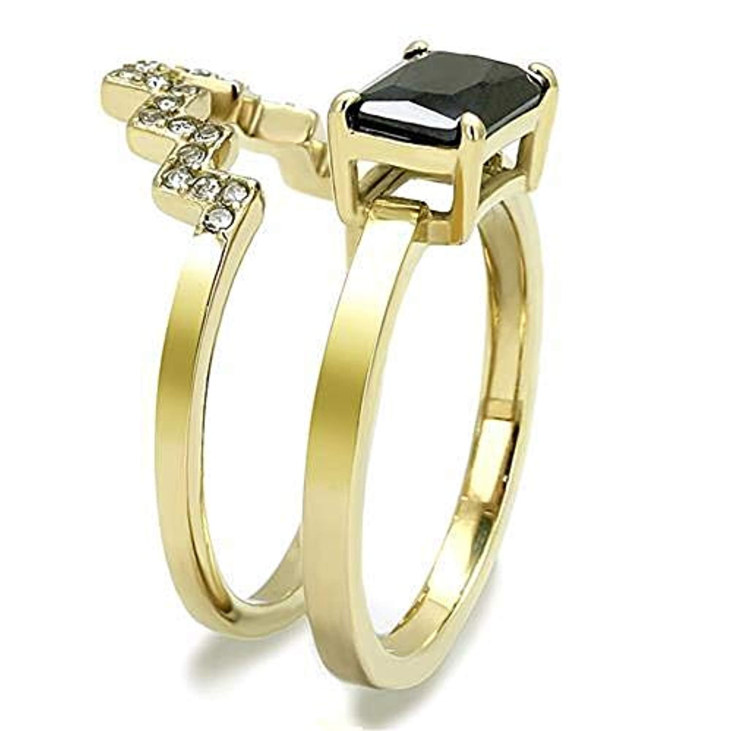 WildKlass Stainless Steel Ring IP Gold Women AAA Grade CZ Black Diamond