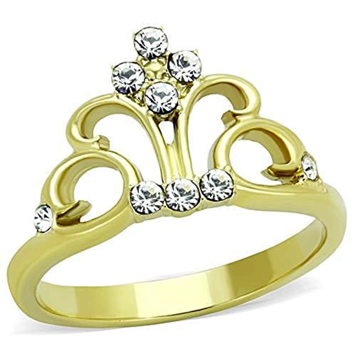WildKlass Stainless Steel Ring IP Gold Women Top Grade Crystal Clear Crown
