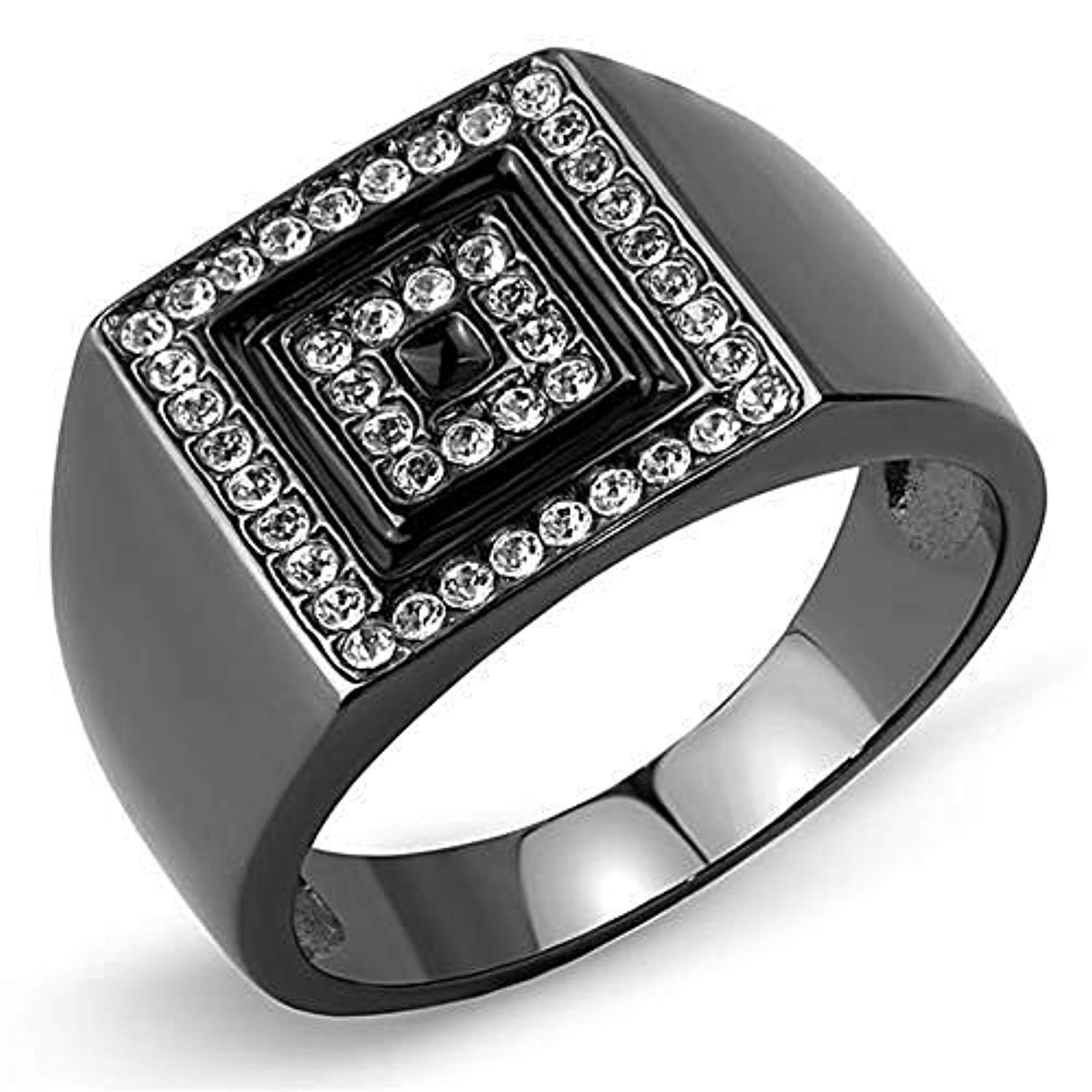 WildKlass Stainless Steel Ring IP Light Black (IP Gun) Men Top Grade Crystal Clear