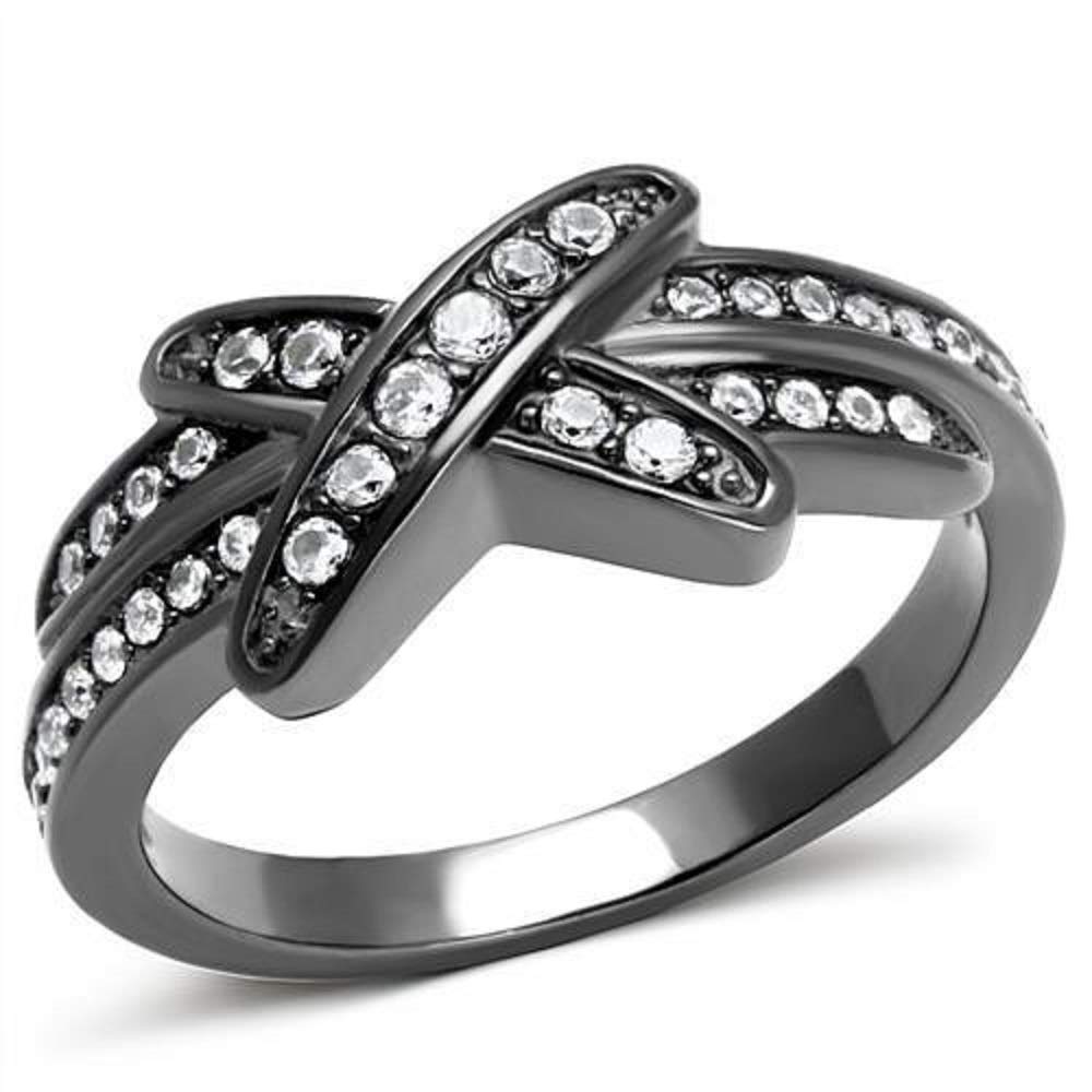 WildKlass Stainless Steel Ring IP Light Black (IP Gun) Women AAA Grade CZ Clear