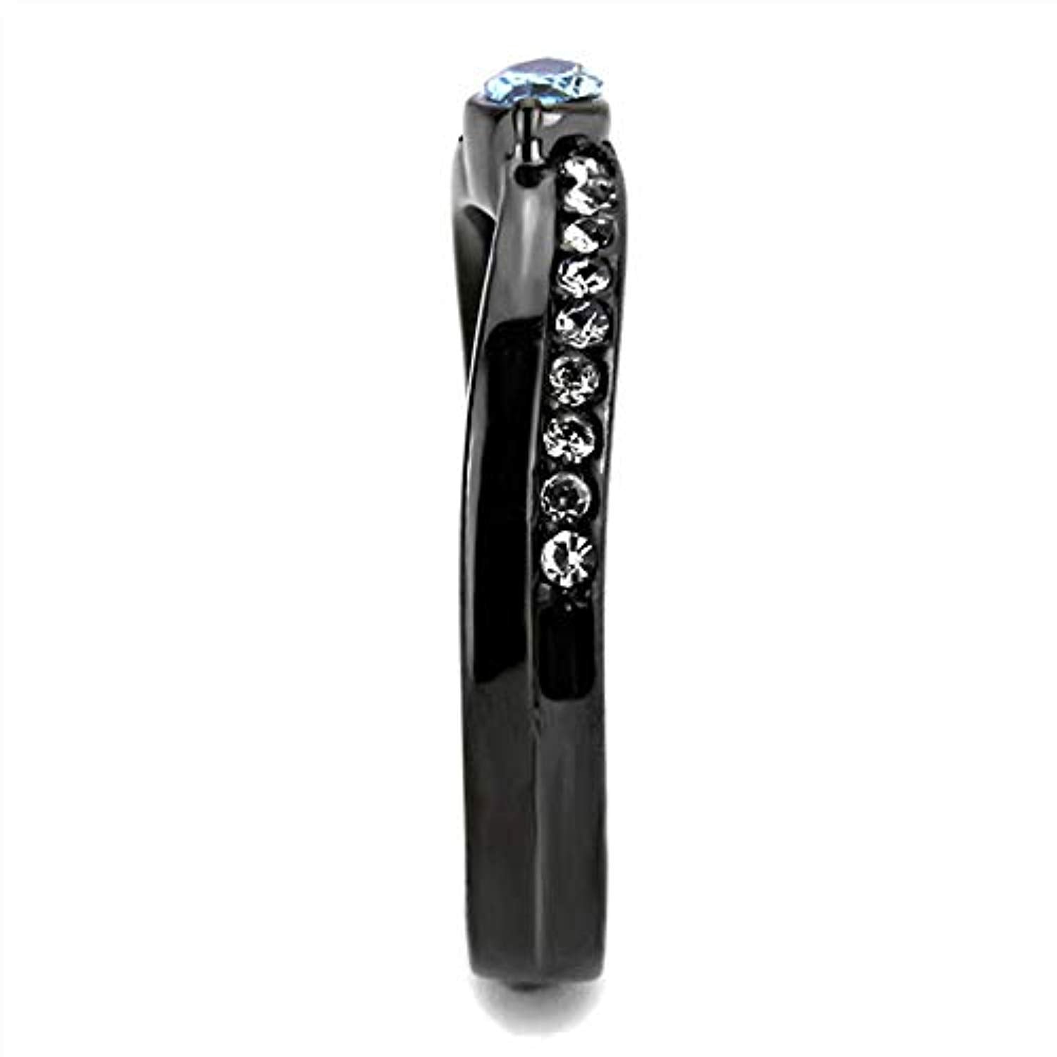 WildKlass Stainless Steel Ring IP Light Black (IP Gun) Women AAA Grade CZ Sea Blue